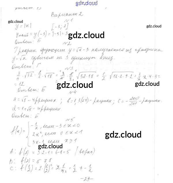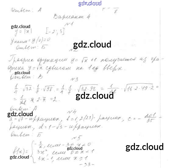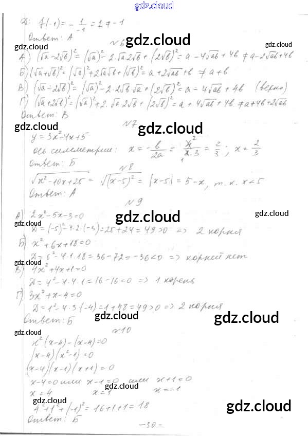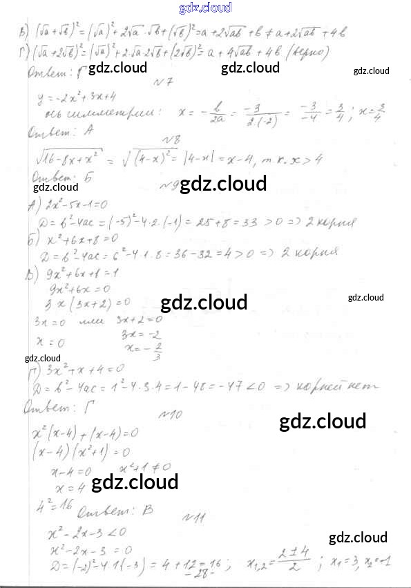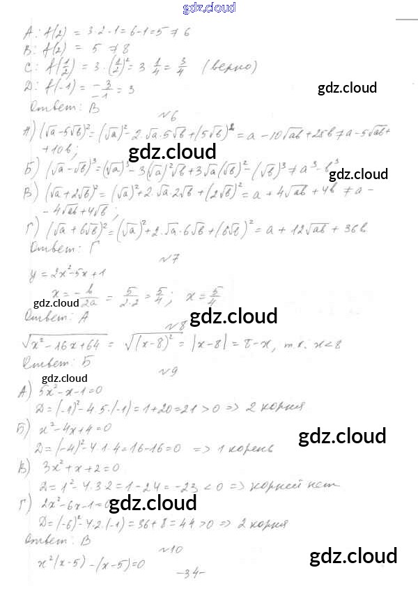 Ответы к 8 класс по Алгебре 7, 8, 9 класс Тесты Мордкович Базовый уровень Мнемозина