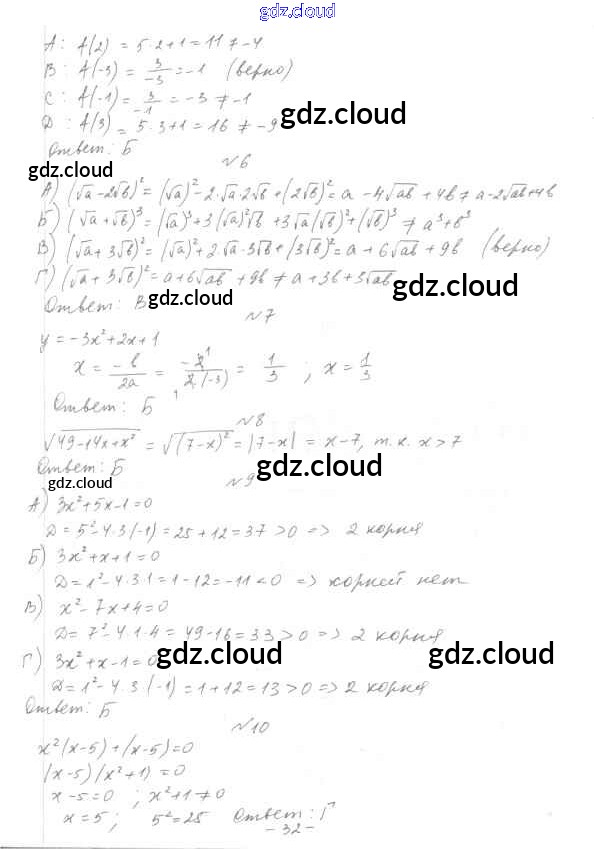 Ответ на задание Итоговый тест Тесты Алгебра за 7, 8, 9 (седьмой, восьмой, девятый) класс Мордкович, Тульчинкая Базовый уровень 2013