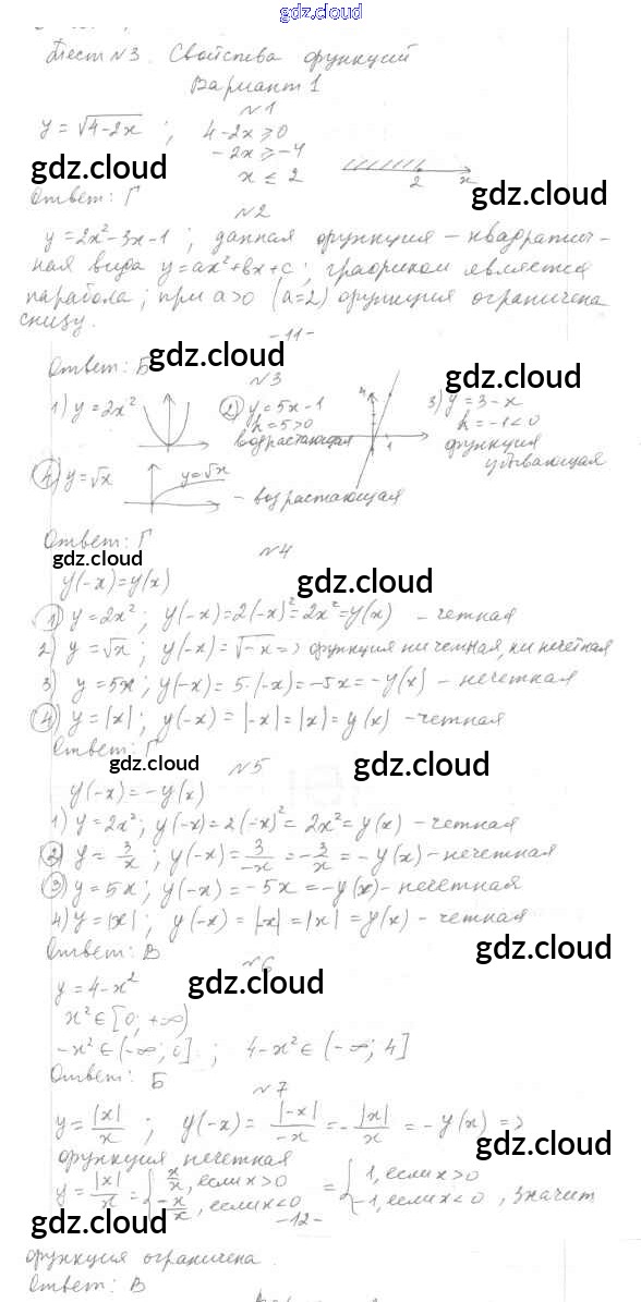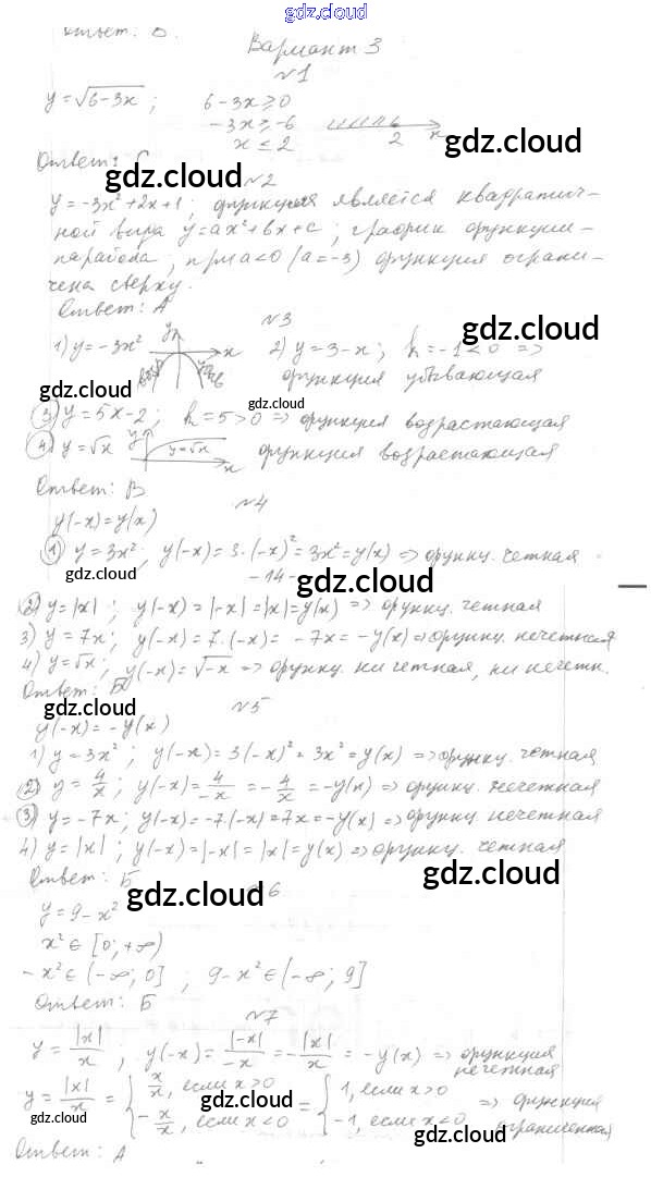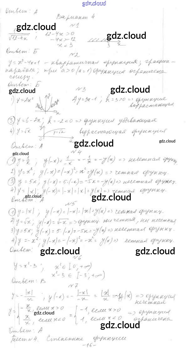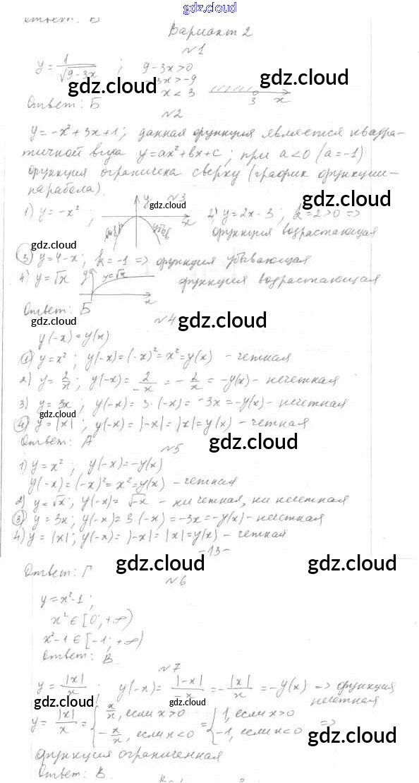 Ответы к 9 класс по Алгебре 7, 8, 9 класс Тесты Мордкович Базовый уровень Мнемозина
