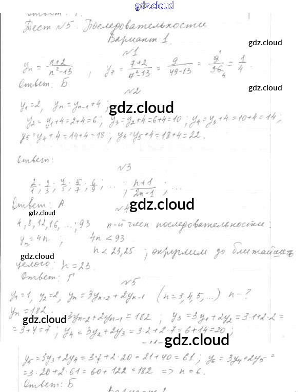 Ответ на задание Тест 5 Тесты Алгебра за 7, 8, 9 (седьмой, восьмой, девятый) класс Мордкович, Тульчинкая Базовый уровень 2013