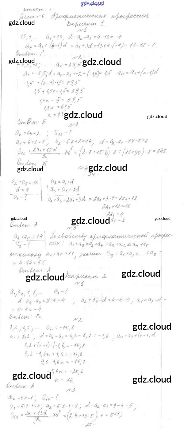 Ответ на задание Тест 6 Тесты Алгебра за 7, 8, 9 (седьмой, восьмой, девятый) класс Мордкович, Тульчинкая Базовый уровень 2013