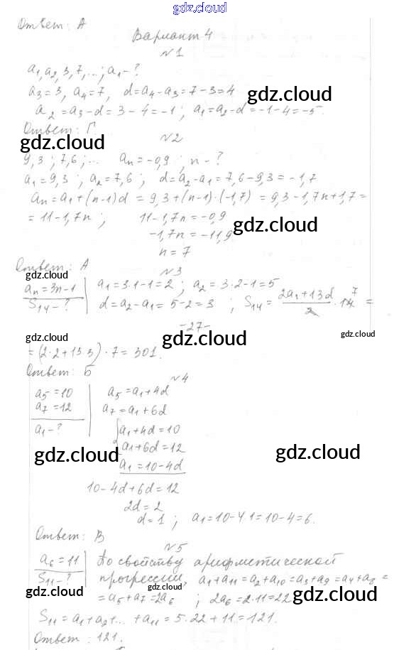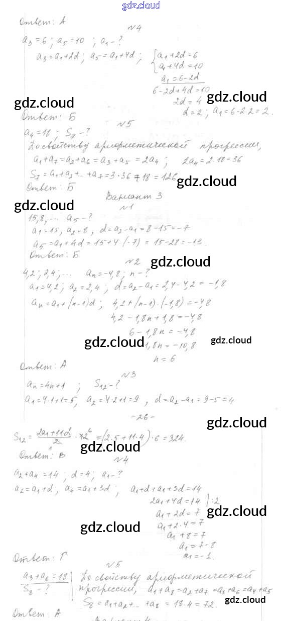Ответы к 9 класс по Алгебре 7, 8, 9 класс Тесты Мордкович Базовый уровень Мнемозина