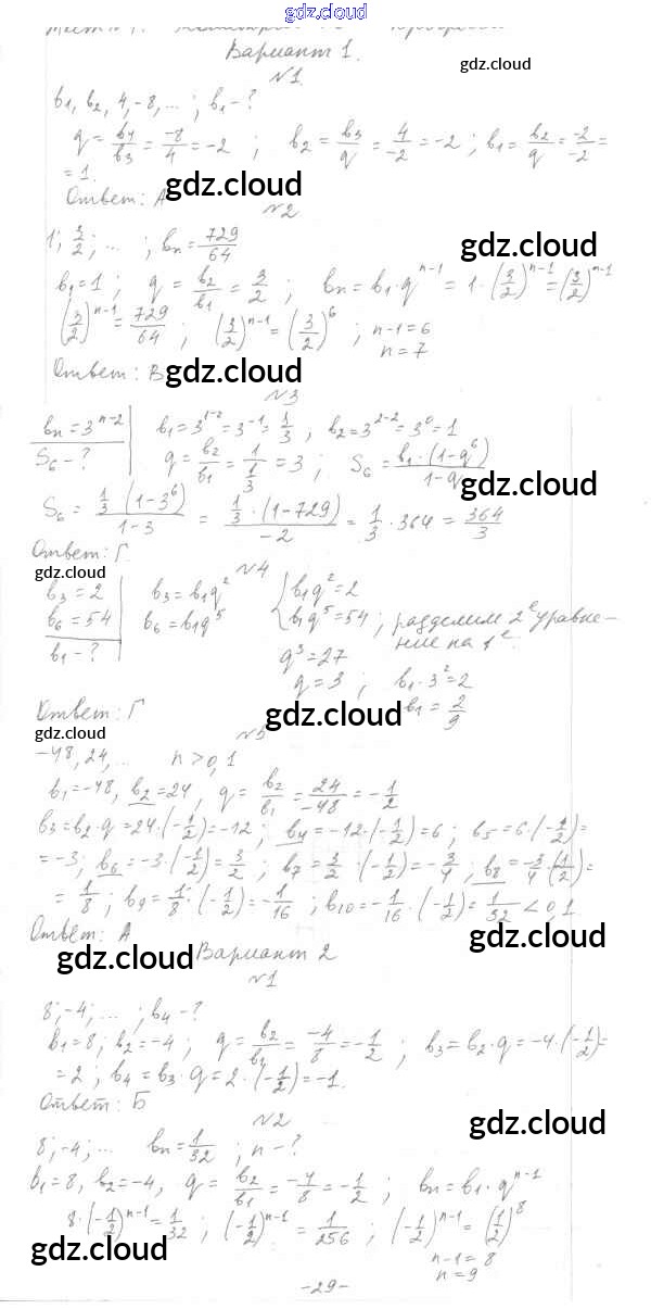 Ответы к 9 класс по Алгебре 7, 8, 9 класс Тесты Мордкович Базовый уровень Мнемозина