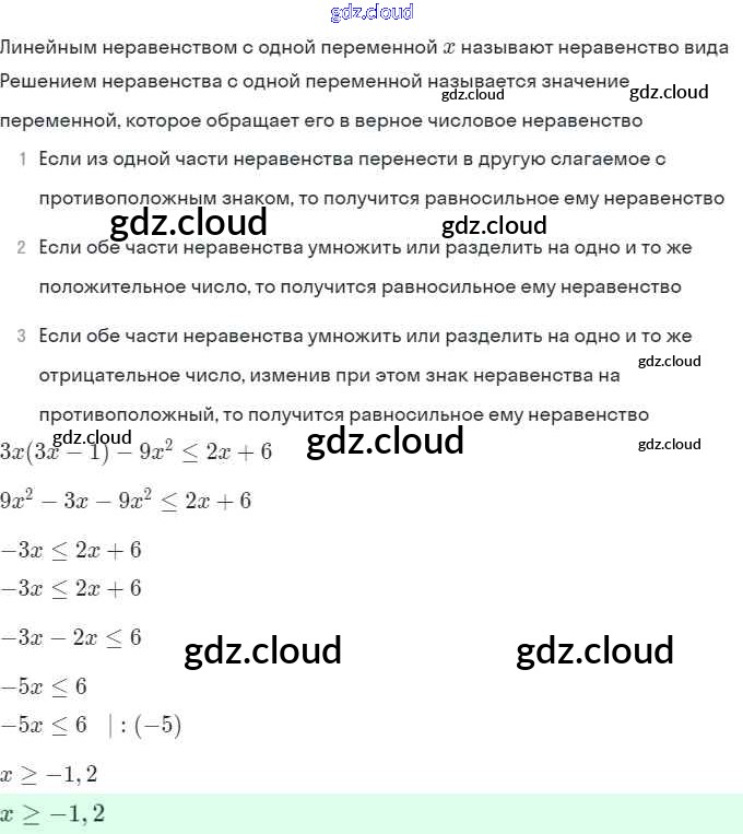 § 1. Линейные и квадратные неравенства Ответы. Глава 1. Рациональные неравенства и их системы по Алгебре 9 класс Задачник Мордкович Часть 2 Мнемозина
