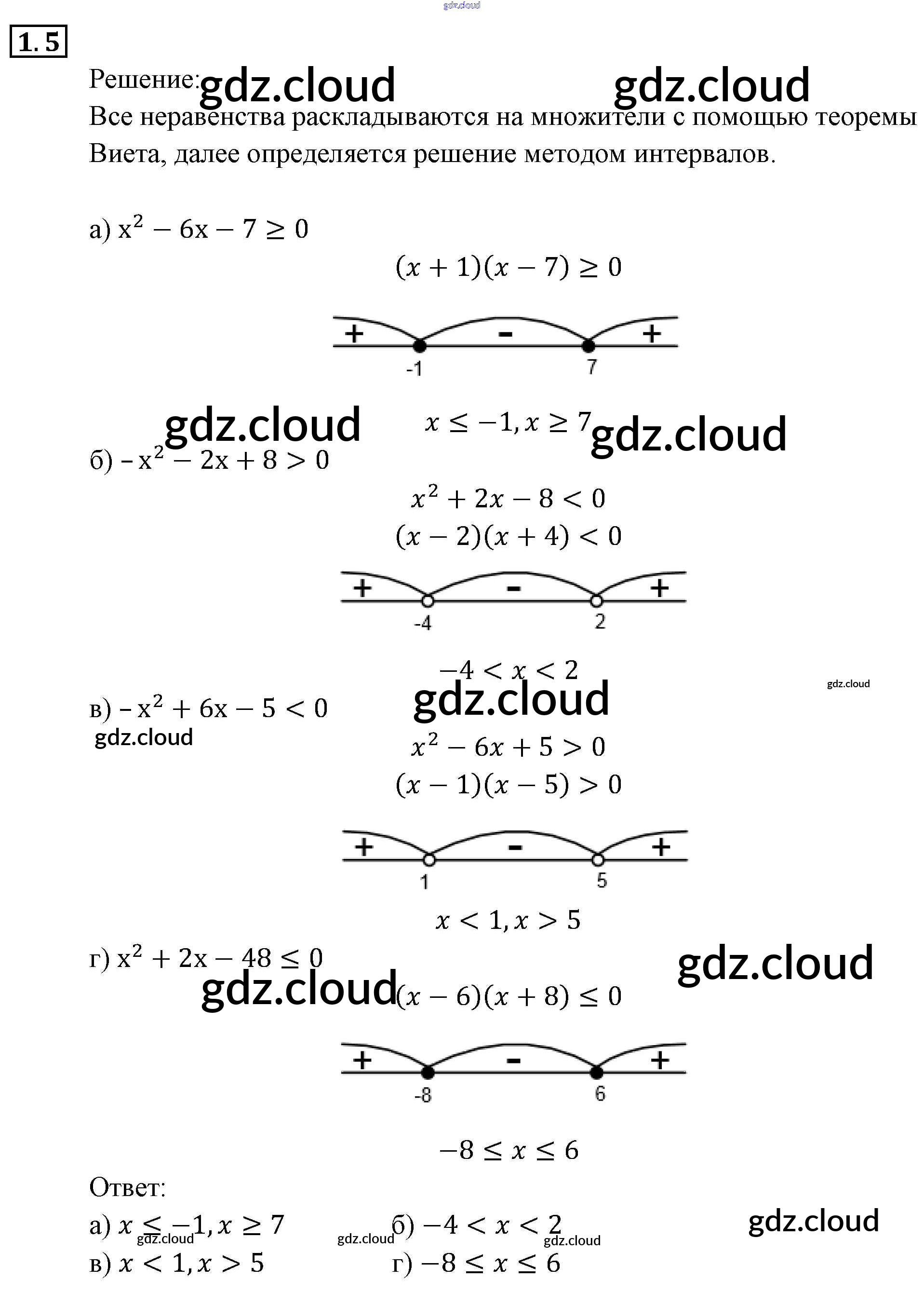 § 1. Линейные и квадратные неравенства Ответы к Главе 1. Неравенства и системы неравенств по Алгебре 9 класс Задачник Мордкович Часть 2 Мнемозина