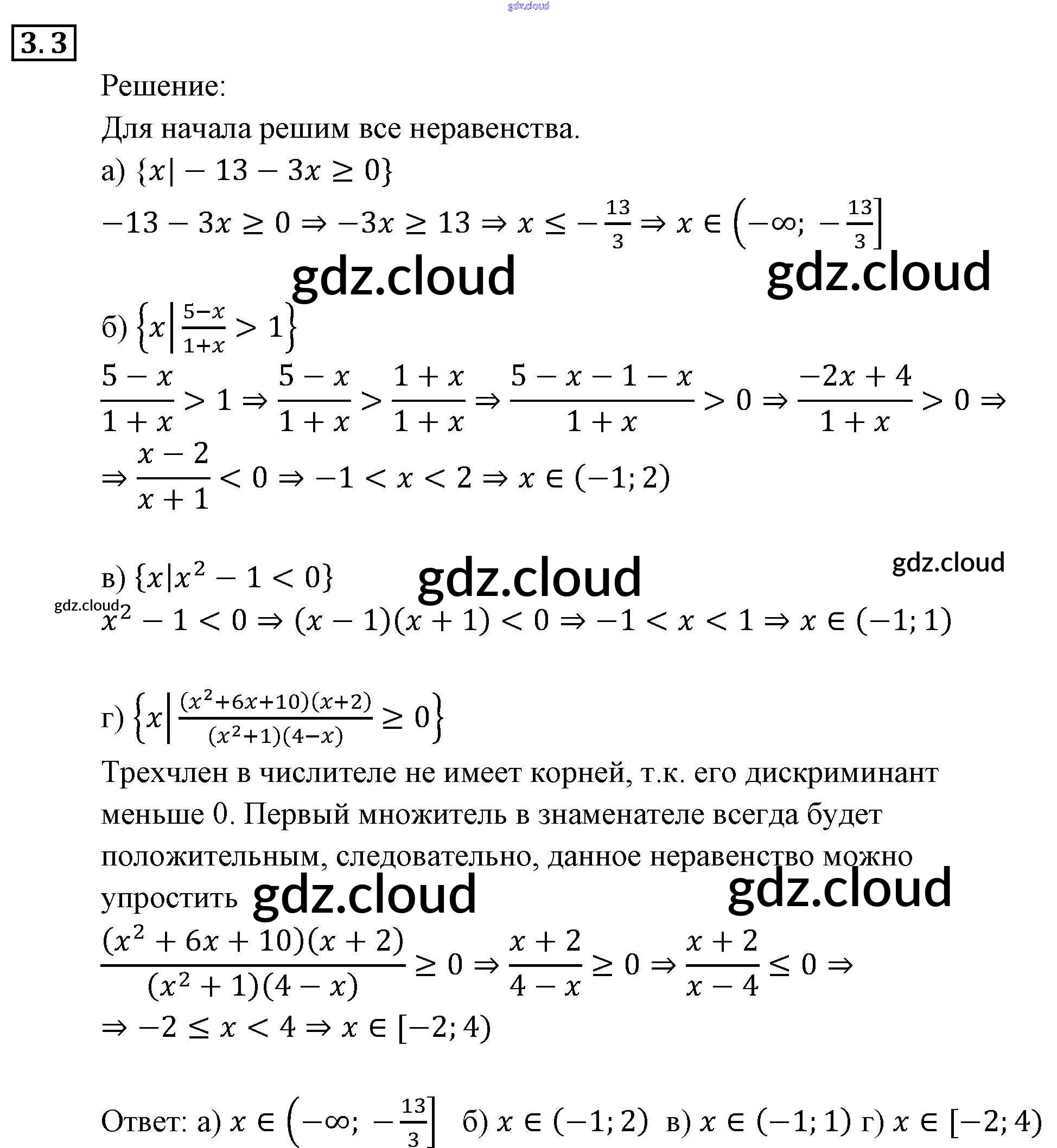 § 3. Множества и операции над ними Ответы к Главе 1. Неравенства и системы неравенств по Алгебре 9 класс Задачник Мордкович Часть 2 Мнемозина