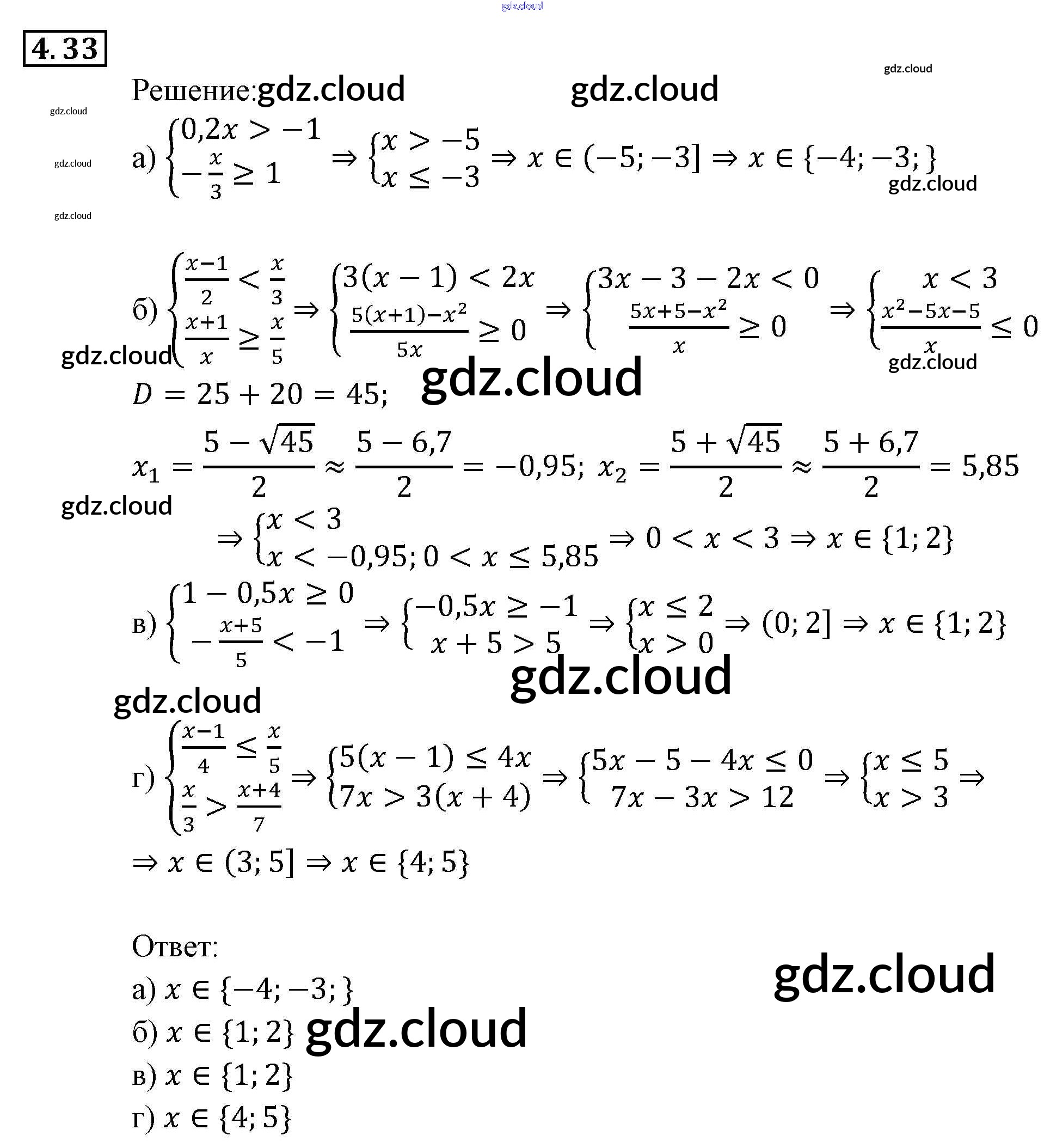 Ответ на задание 4.33 Задачник Алгебра за 9 (девятый) класс Мордкович, Александрова, Мишустина, Тульчинская, Семёнов 2010 Часть 2