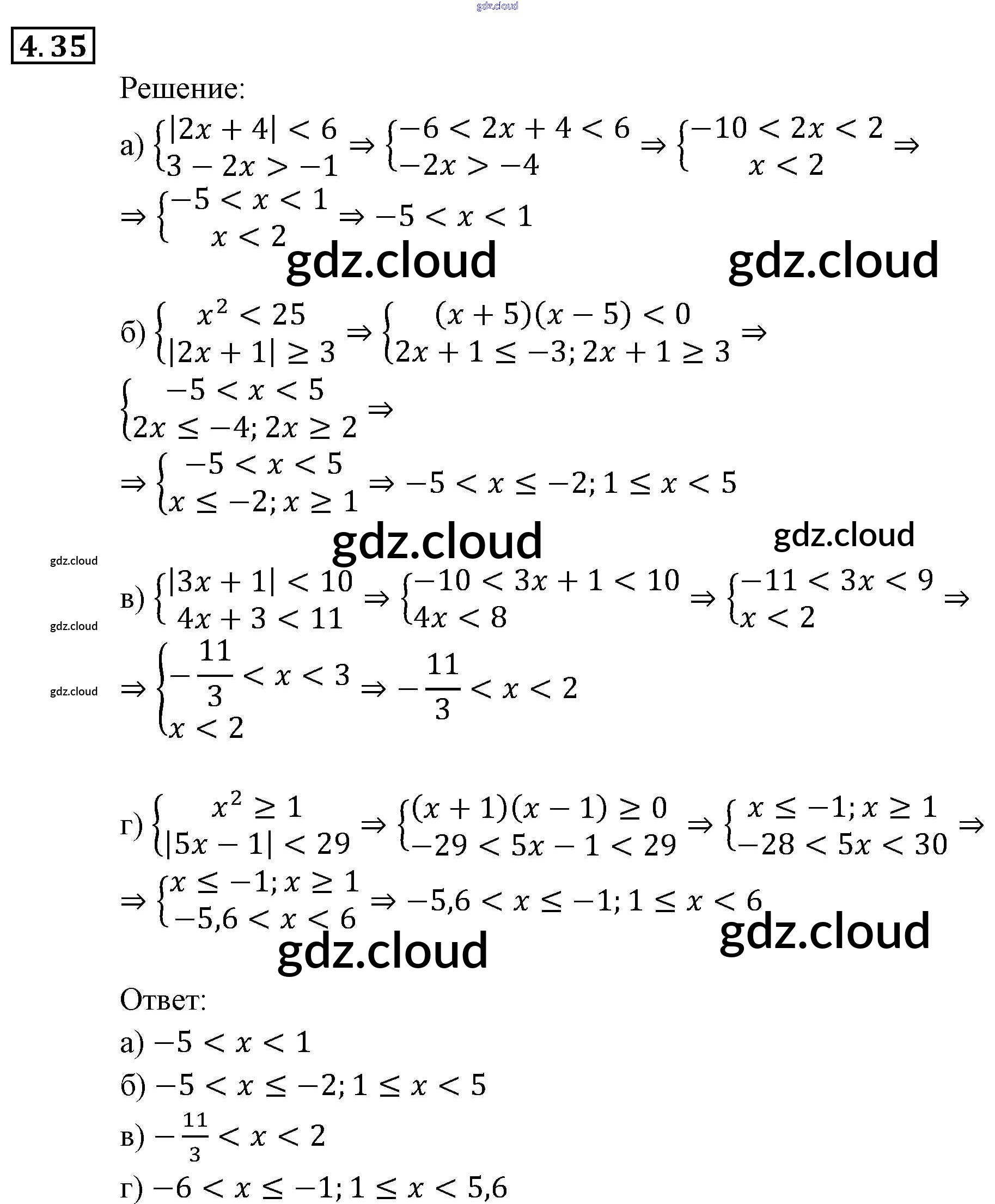 Ответ на задание 4.35 Задачник Алгебра за 9 (девятый) класс Мордкович, Александрова, Мишустина, Тульчинская, Семёнов 2010 Часть 2