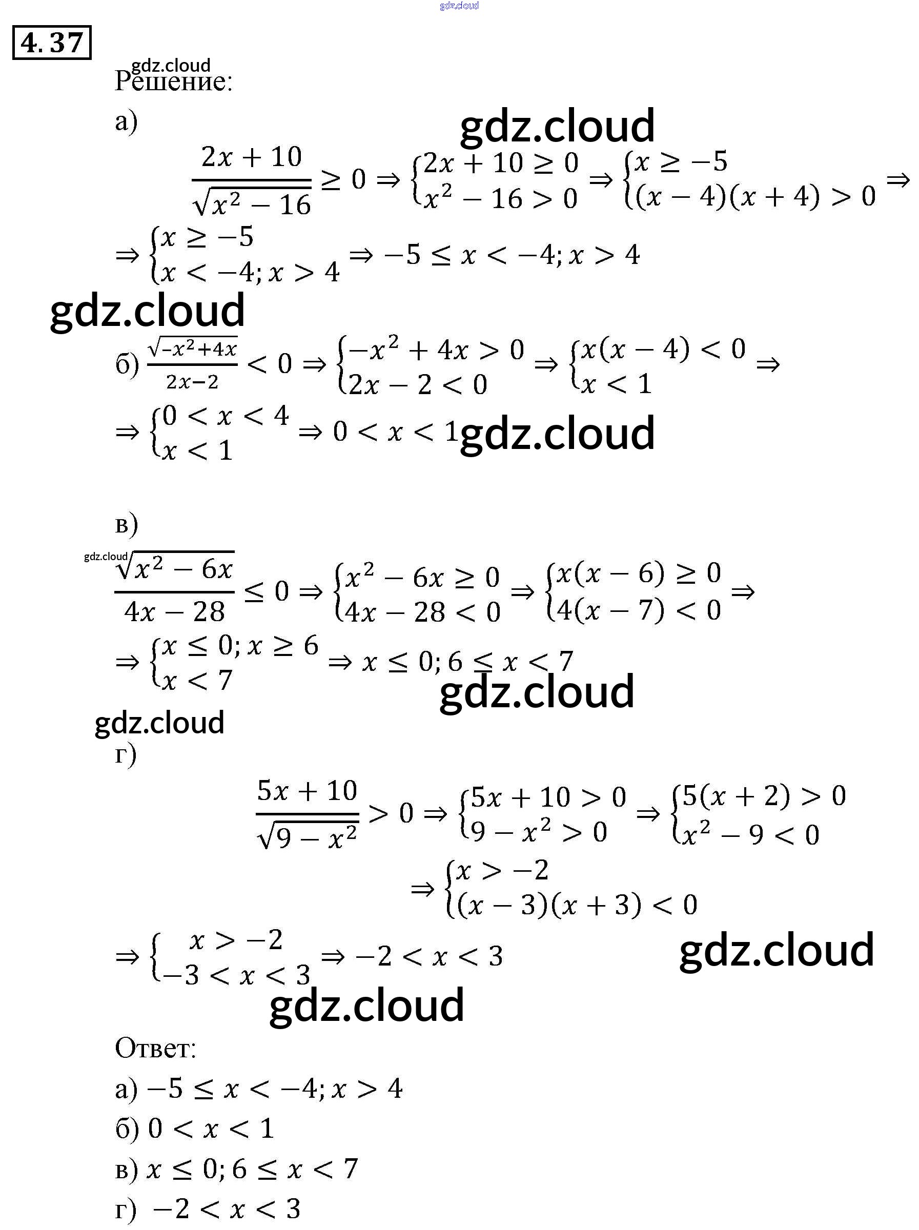 Ответ на задание 4.37 Задачник Алгебра за 9 (девятый) класс Мордкович, Александрова, Мишустина, Тульчинская, Семёнов 2010 Часть 2