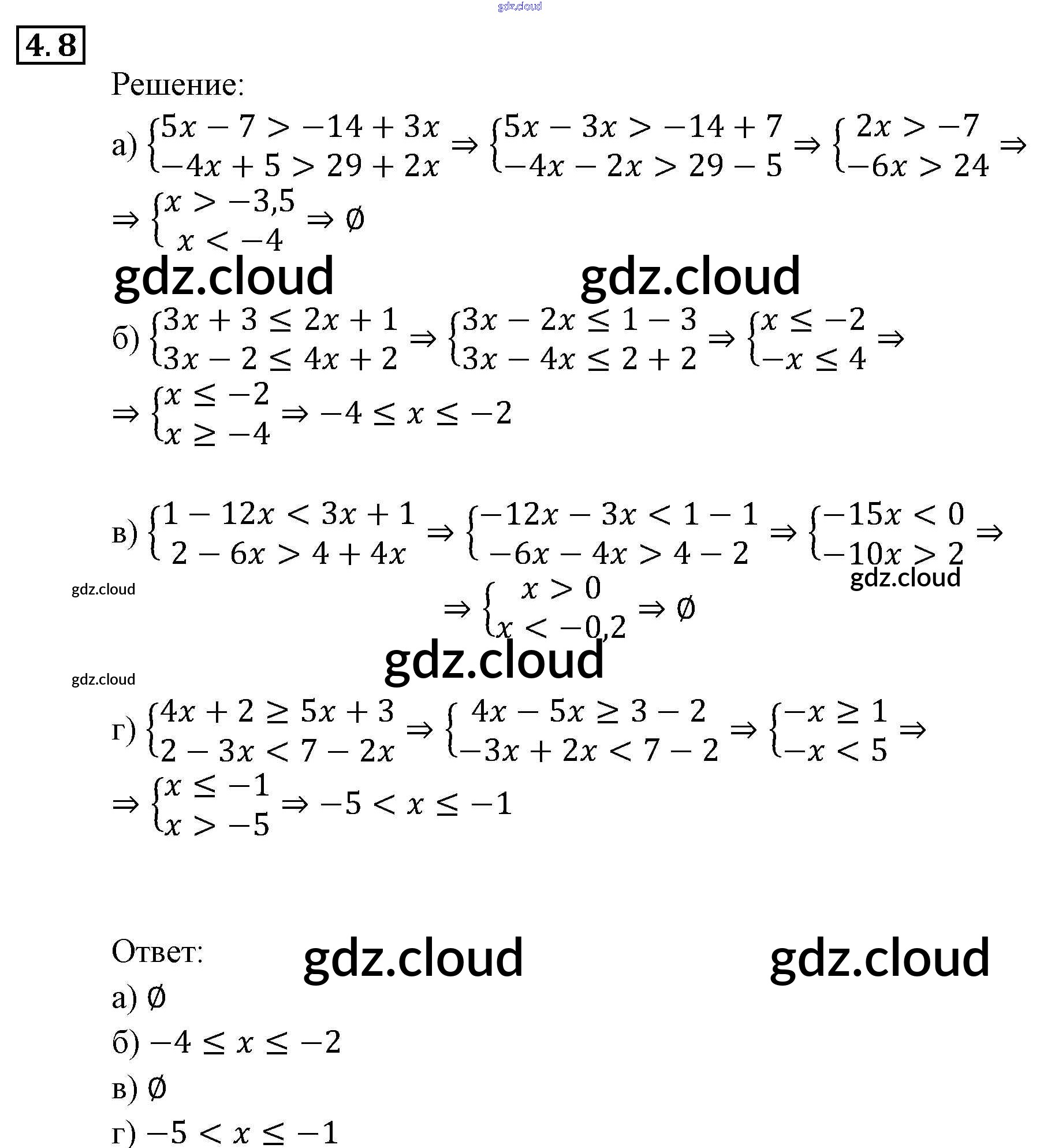 § 4. Системы рациональных неравенств Ответы к Главе 1. Неравенства и системы неравенств по Алгебре 9 класс Задачник Мордкович Часть 2 Мнемозина