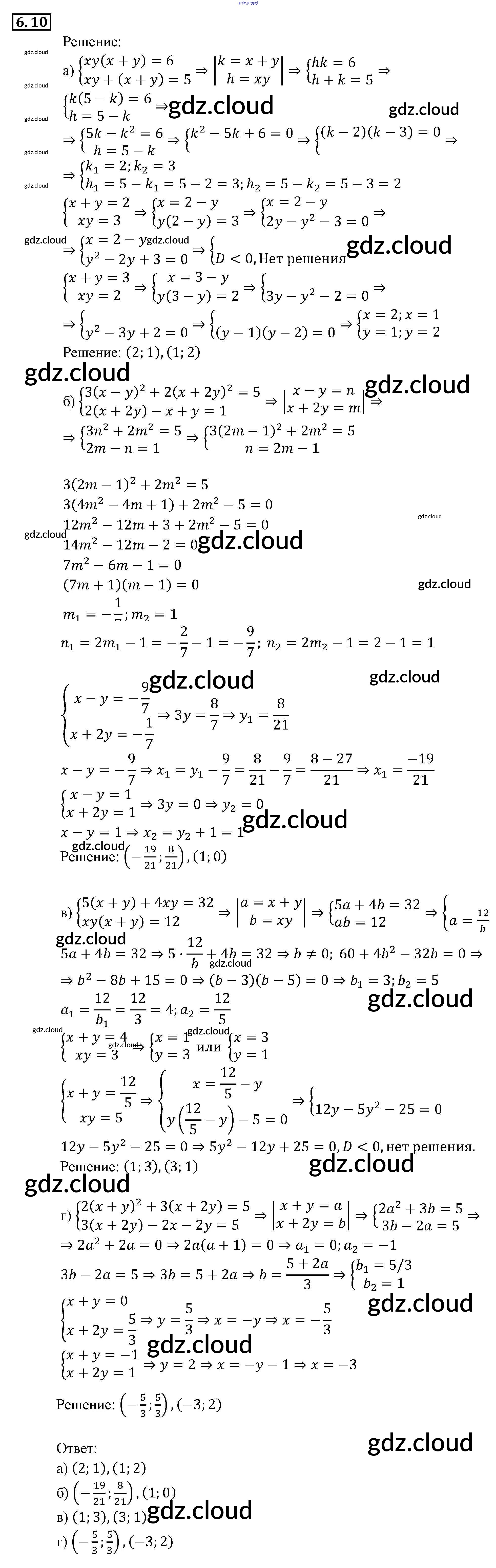 § 6. Методы решения систем уравнений Ответы к Главе 2. Системы уравнений по Алгебре 9 класс Задачник Мордкович Часть 2 Мнемозина
