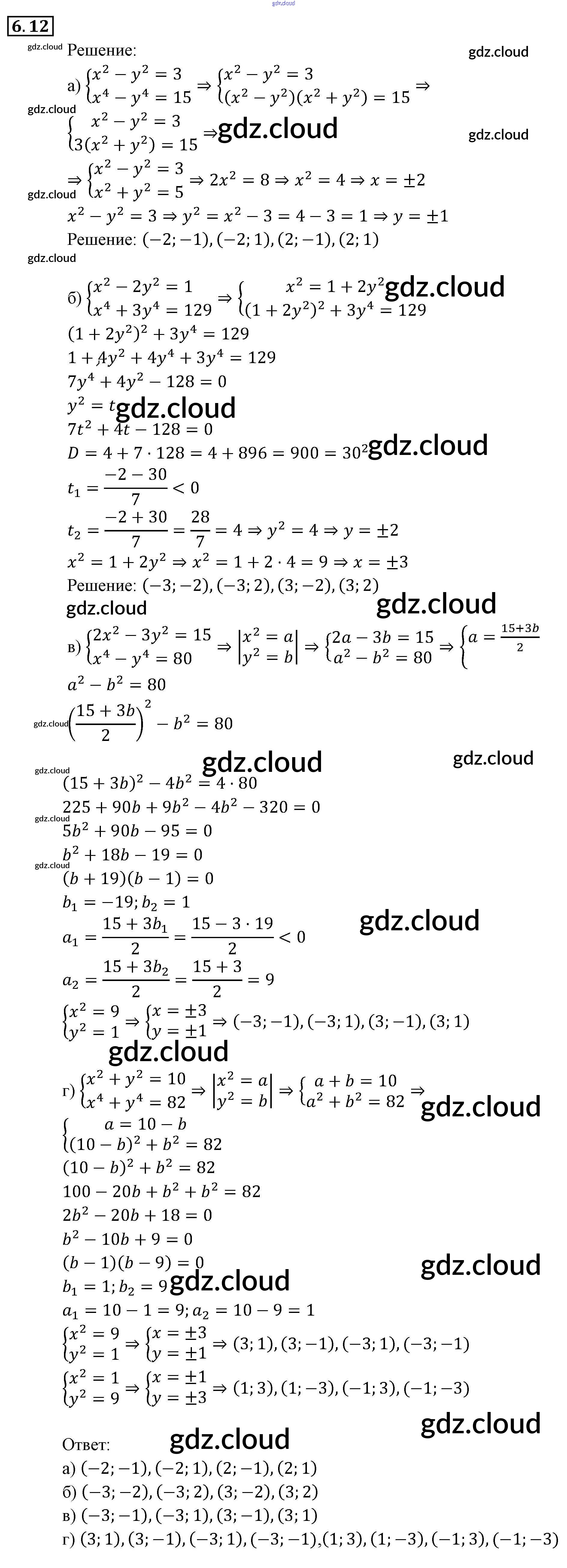 § 6. Методы решения систем уравнений Ответы к Главе 2. Системы уравнений по Алгебре 9 класс Задачник Мордкович Часть 2 Мнемозина