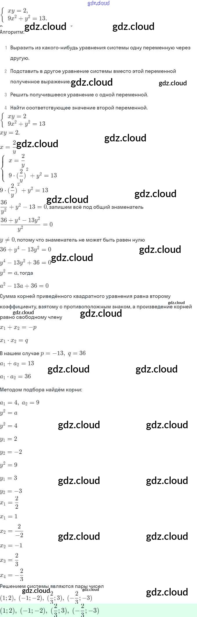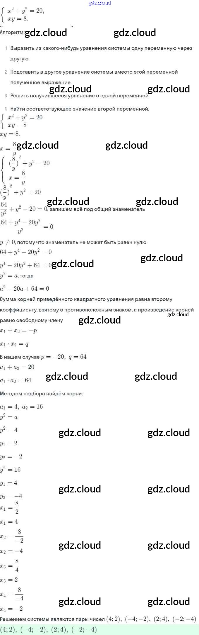 § 6. Методы решения систем уравнений Ответы. Глава 2. Системы уравнений по Алгебре 9 класс Задачник Мордкович Часть 2 Мнемозина