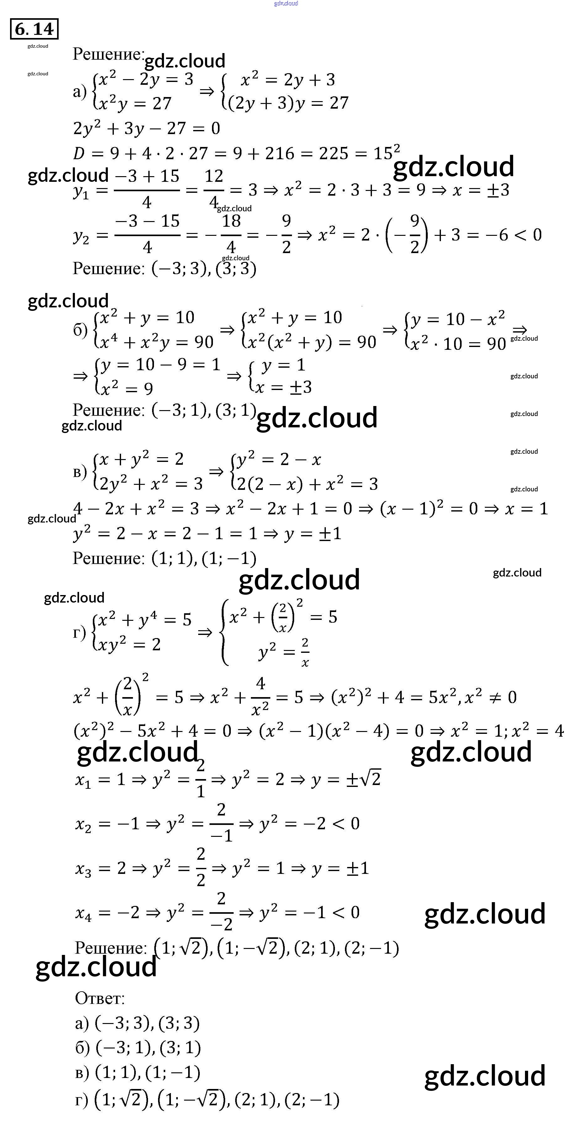 § 6. Методы решения систем уравнений Ответы к Главе 2. Системы уравнений по Алгебре 9 класс Задачник Мордкович Часть 2 Мнемозина