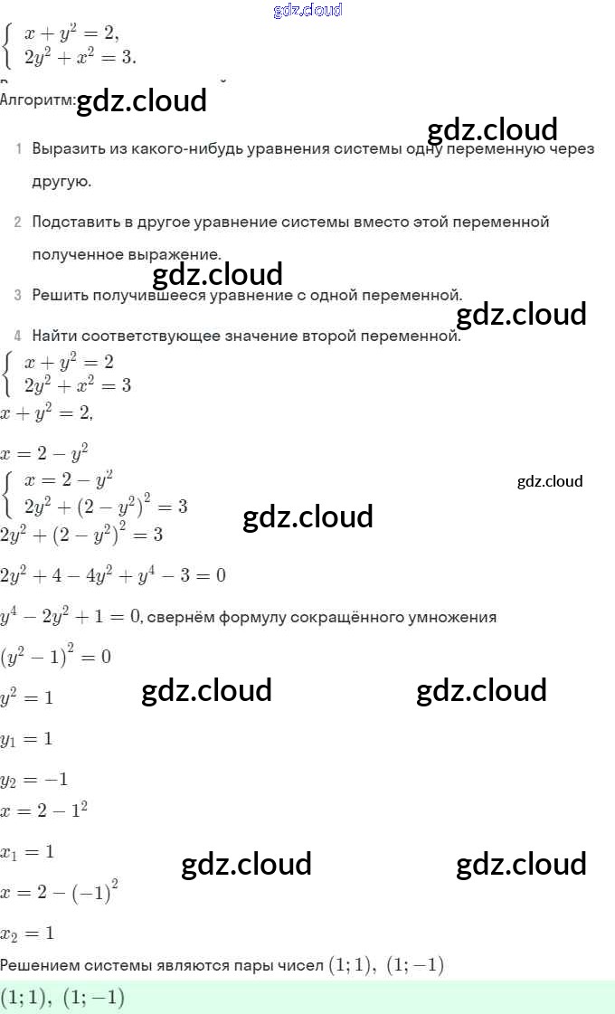 § 6. Методы решения систем уравнений Ответы. Глава 2. Системы уравнений по Алгебре 9 класс Задачник Мордкович Часть 2 Мнемозина