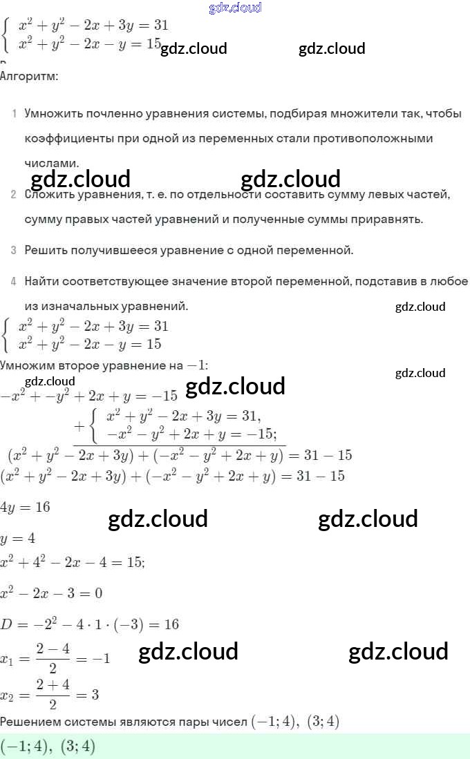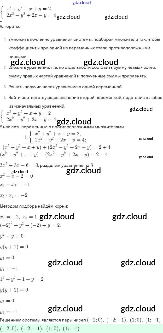 § 6. Методы решения систем уравнений Ответы. Глава 2. Системы уравнений по Алгебре 9 класс Задачник Мордкович Часть 2 Мнемозина