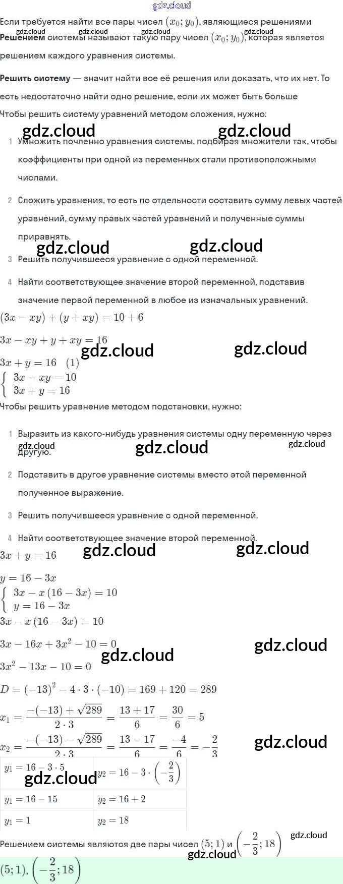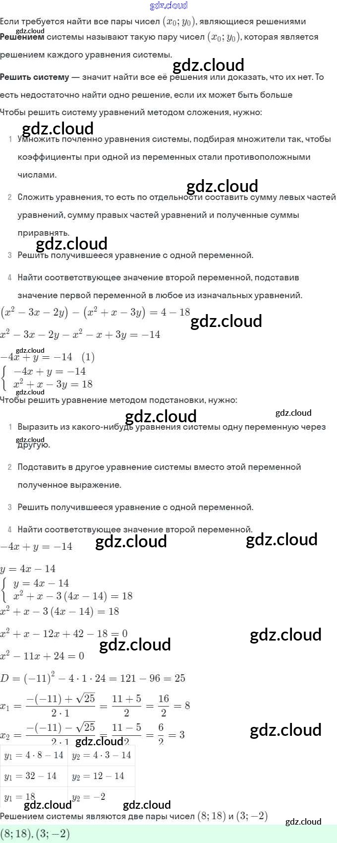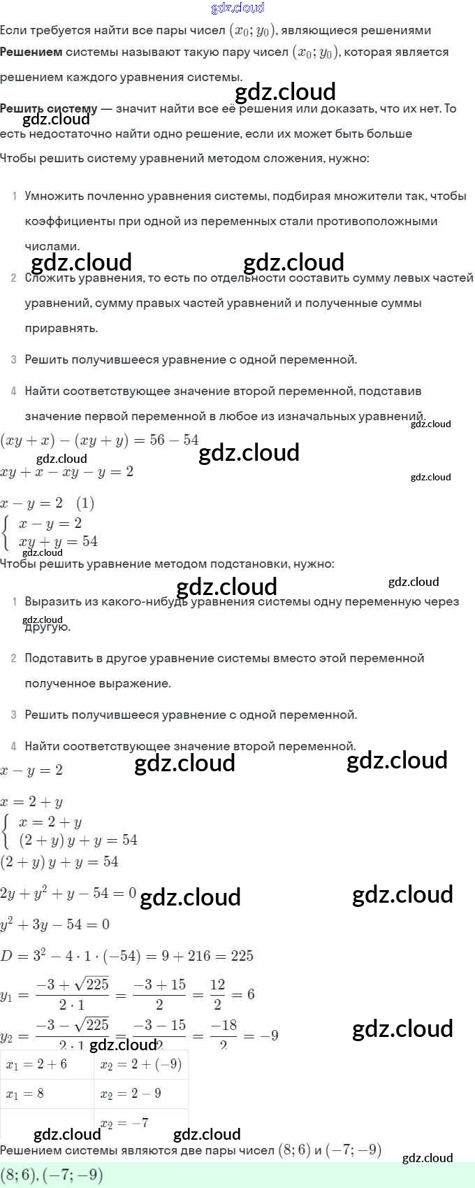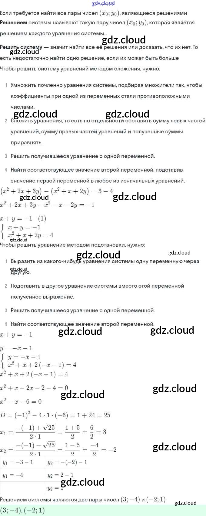 § 6. Методы решения систем уравнений Ответы. Глава 2. Системы уравнений по Алгебре 9 класс Задачник Мордкович Часть 2 Мнемозина