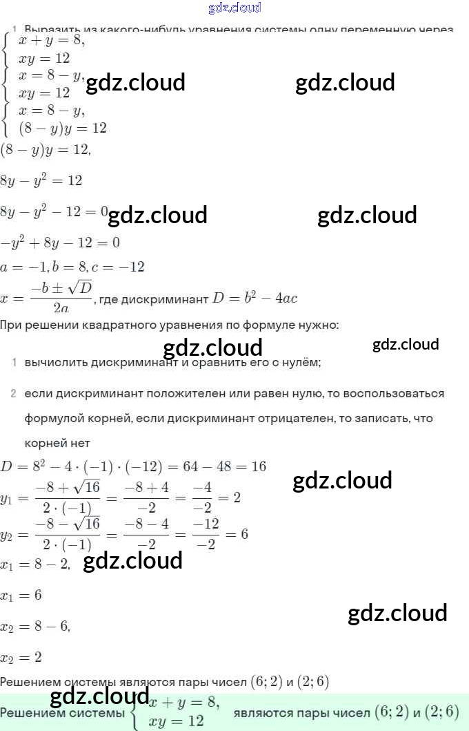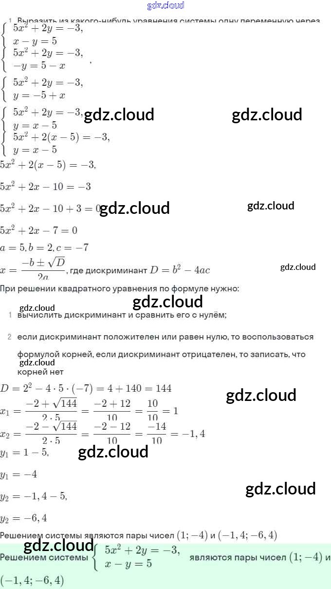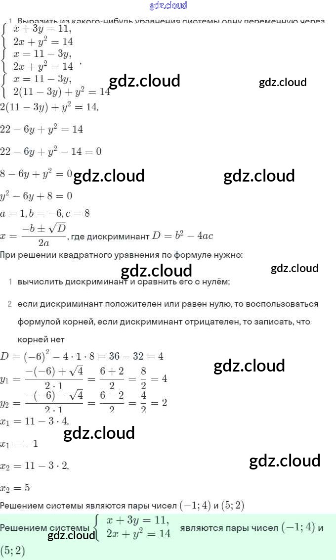 § 6. Методы решения систем уравнений Ответы. Глава 2. Системы уравнений по Алгебре 9 класс Задачник Мордкович Часть 2 Мнемозина