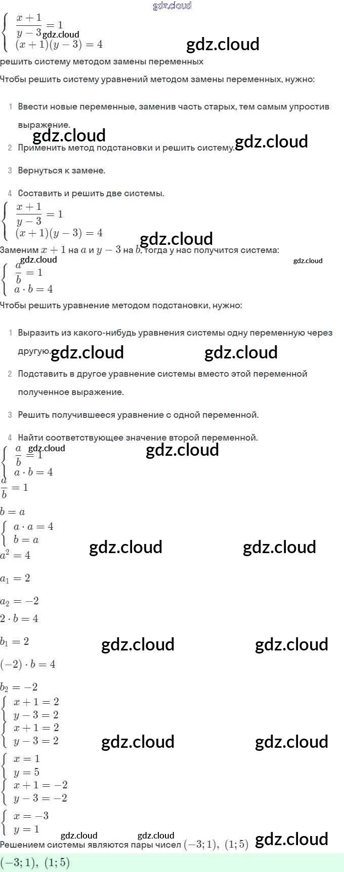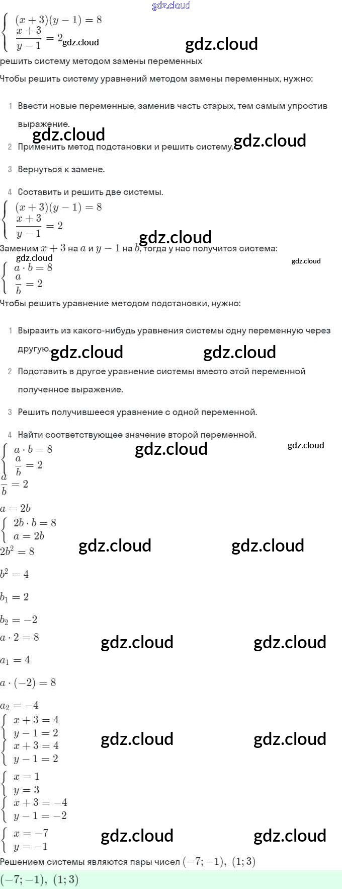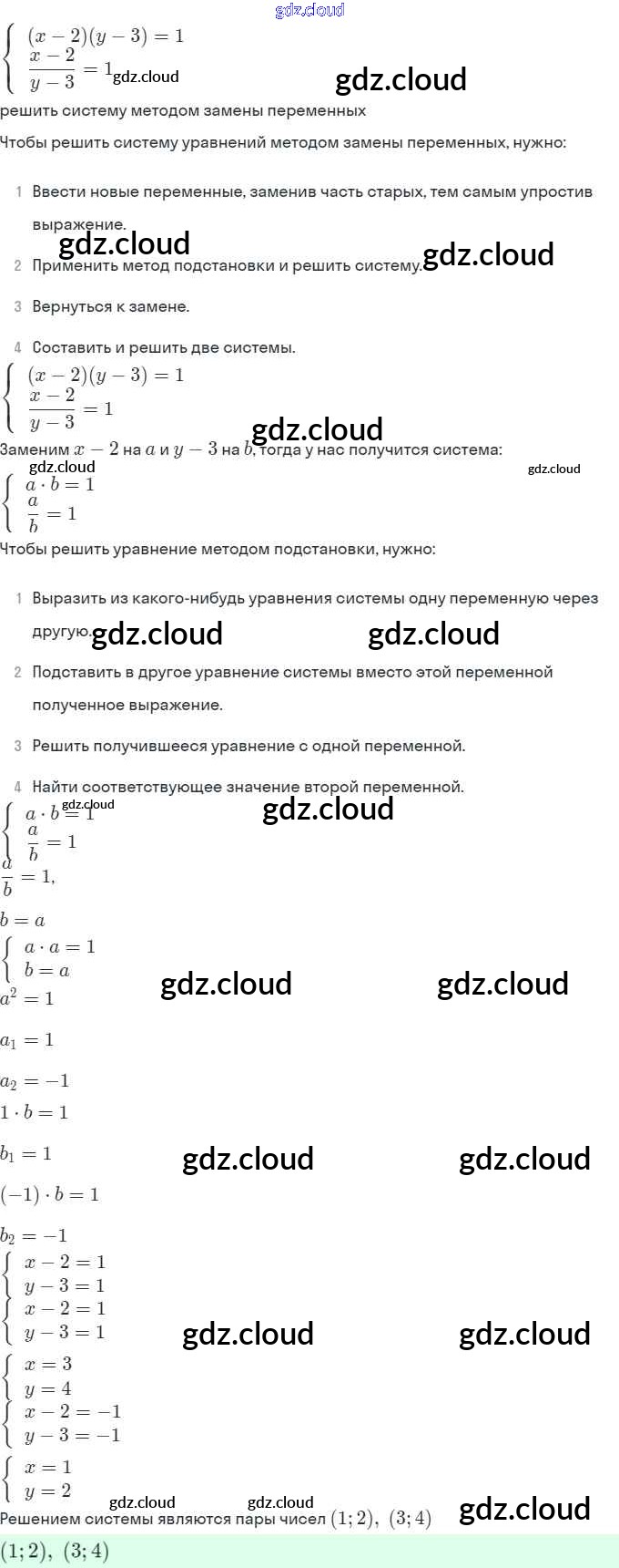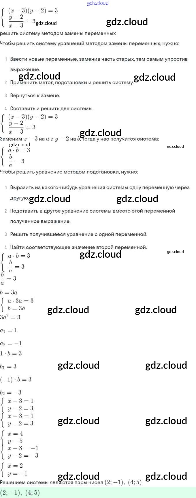 § 6. Методы решения систем уравнений Ответы. Глава 2. Системы уравнений по Алгебре 9 класс Задачник Мордкович Часть 2 Мнемозина