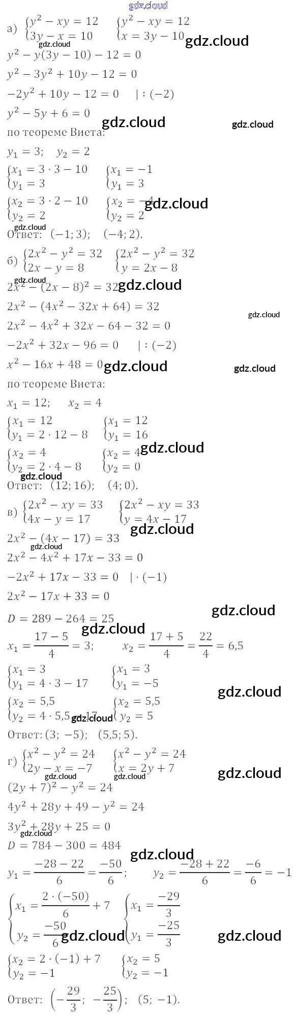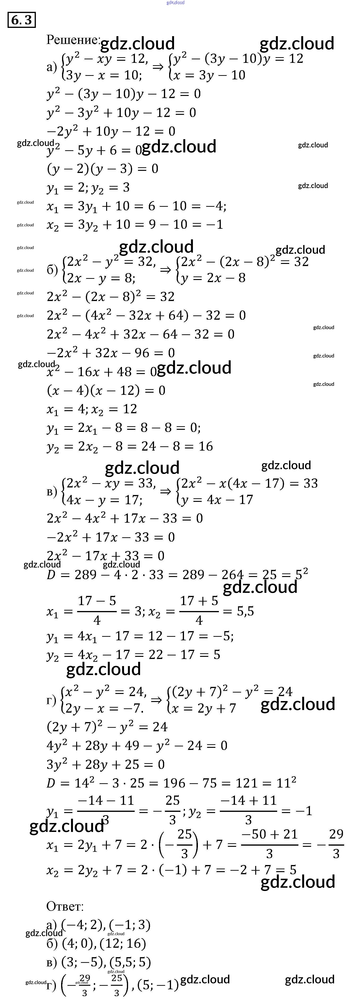§ 6. Методы решения систем уравнений Ответы к Главе 2. Системы уравнений по Алгебре 9 класс Задачник Мордкович Часть 2 Мнемозина