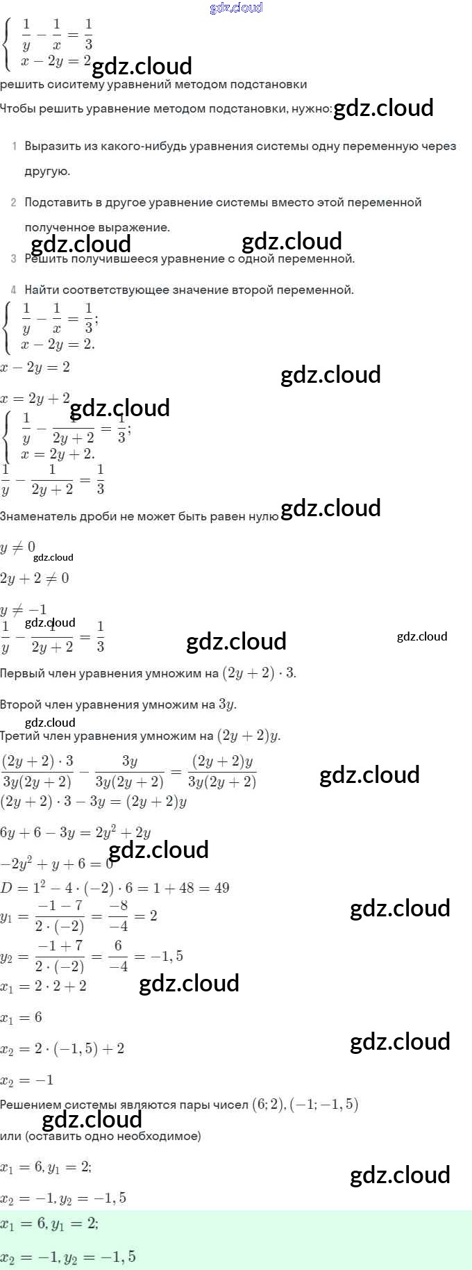 § 6. Методы решения систем уравнений Ответы. Глава 2. Системы уравнений по Алгебре 9 класс Задачник Мордкович Часть 2 Мнемозина