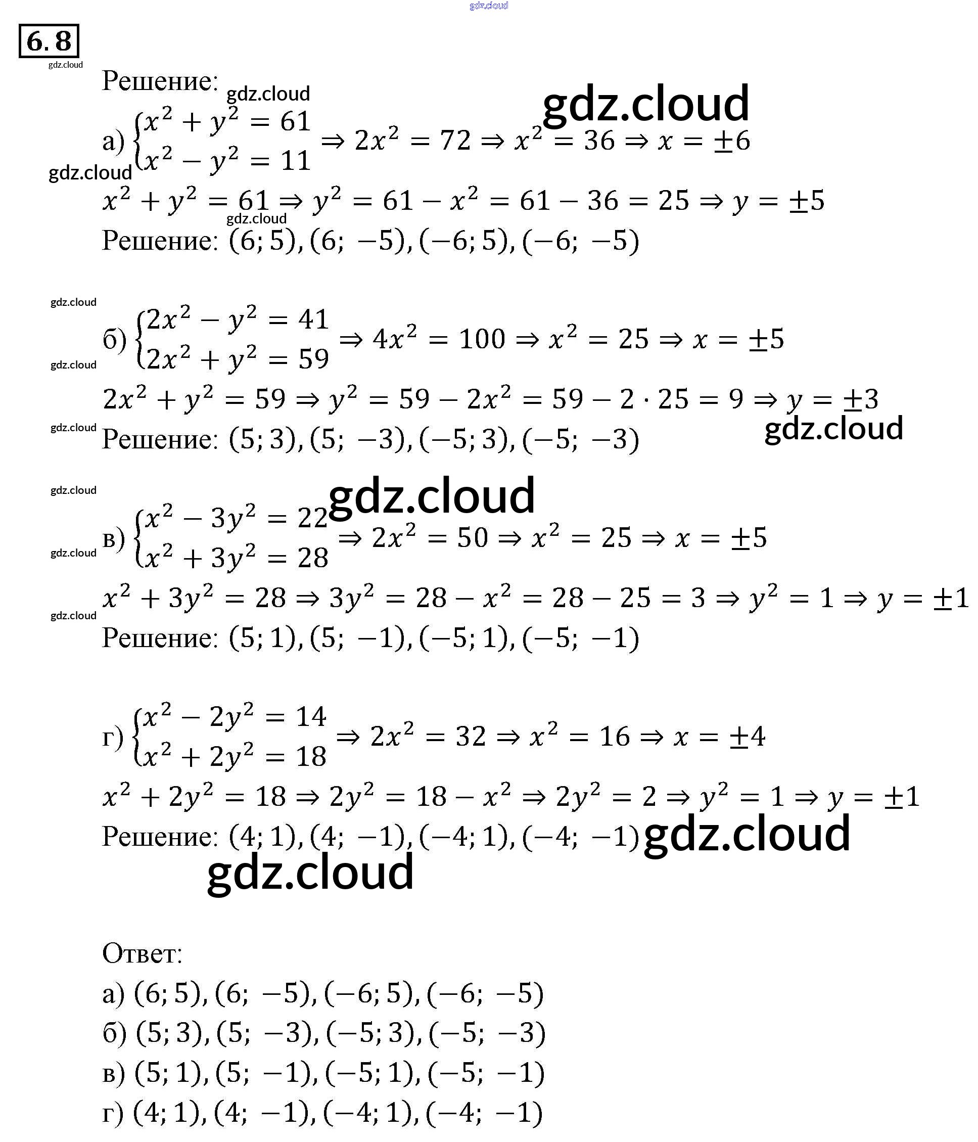 § 6. Методы решения систем уравнений Ответы к Главе 2. Системы уравнений по Алгебре 9 класс Задачник Мордкович Часть 2 Мнемозина