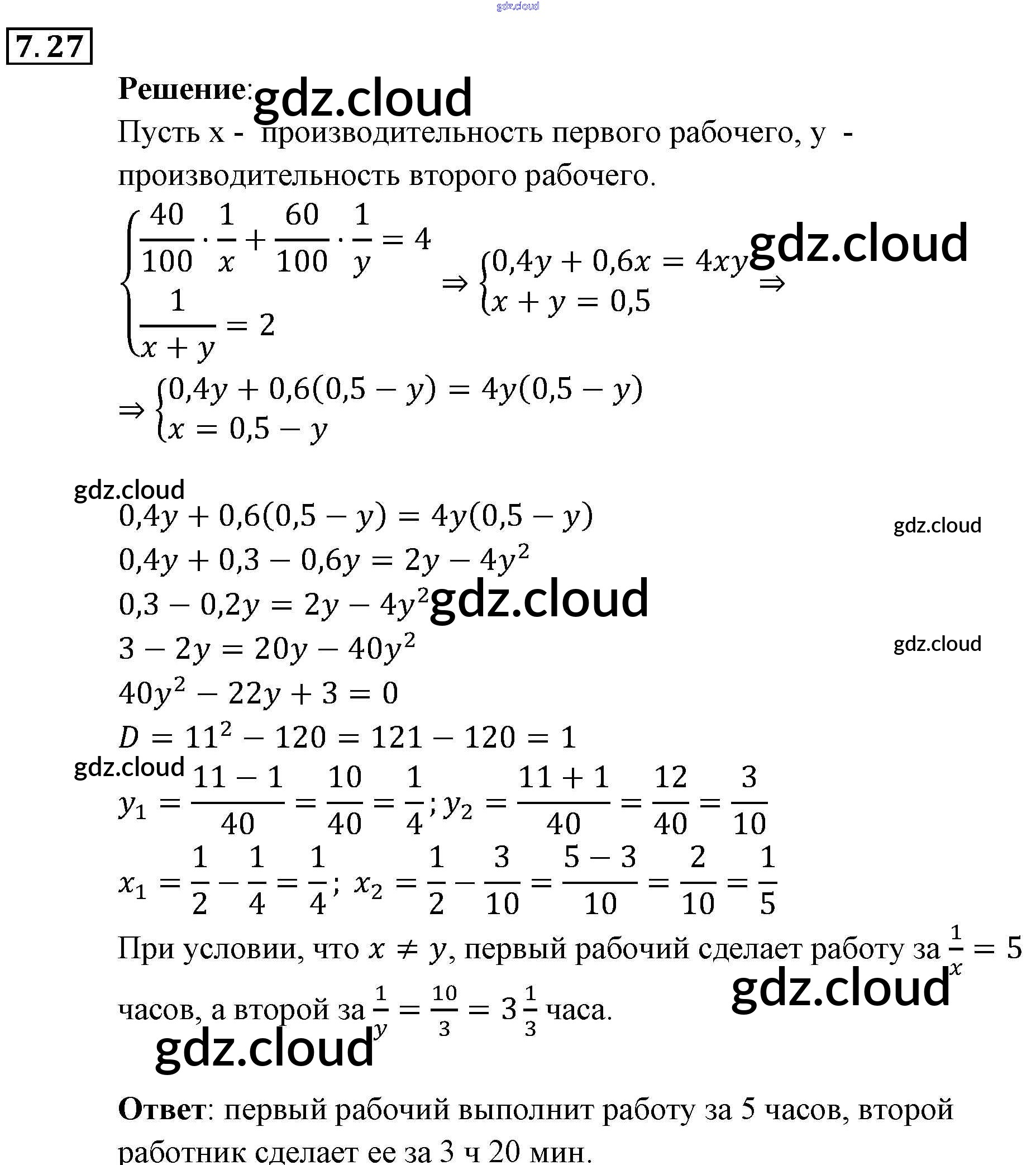 § 7. Системы уравнений как математические модели реальных ситуаций Ответы к Главе 2. Системы уравнений по Алгебре 9 класс Задачник Мордкович Часть 2 Мнемозина