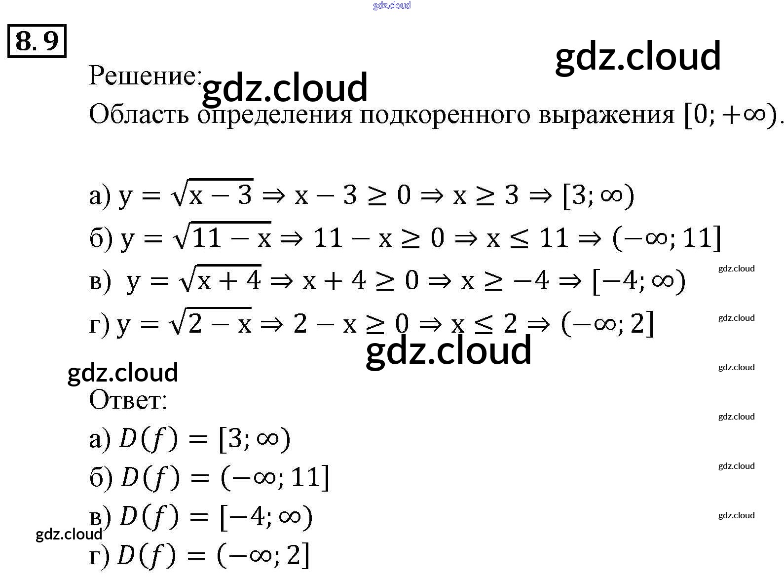 § 8. Определение числовой функции. Область определения, область значений функции Ответы к Главе 3. Числовые функции по Алгебре 9 класс Задачник Мордкович Часть 2 Мнемозина