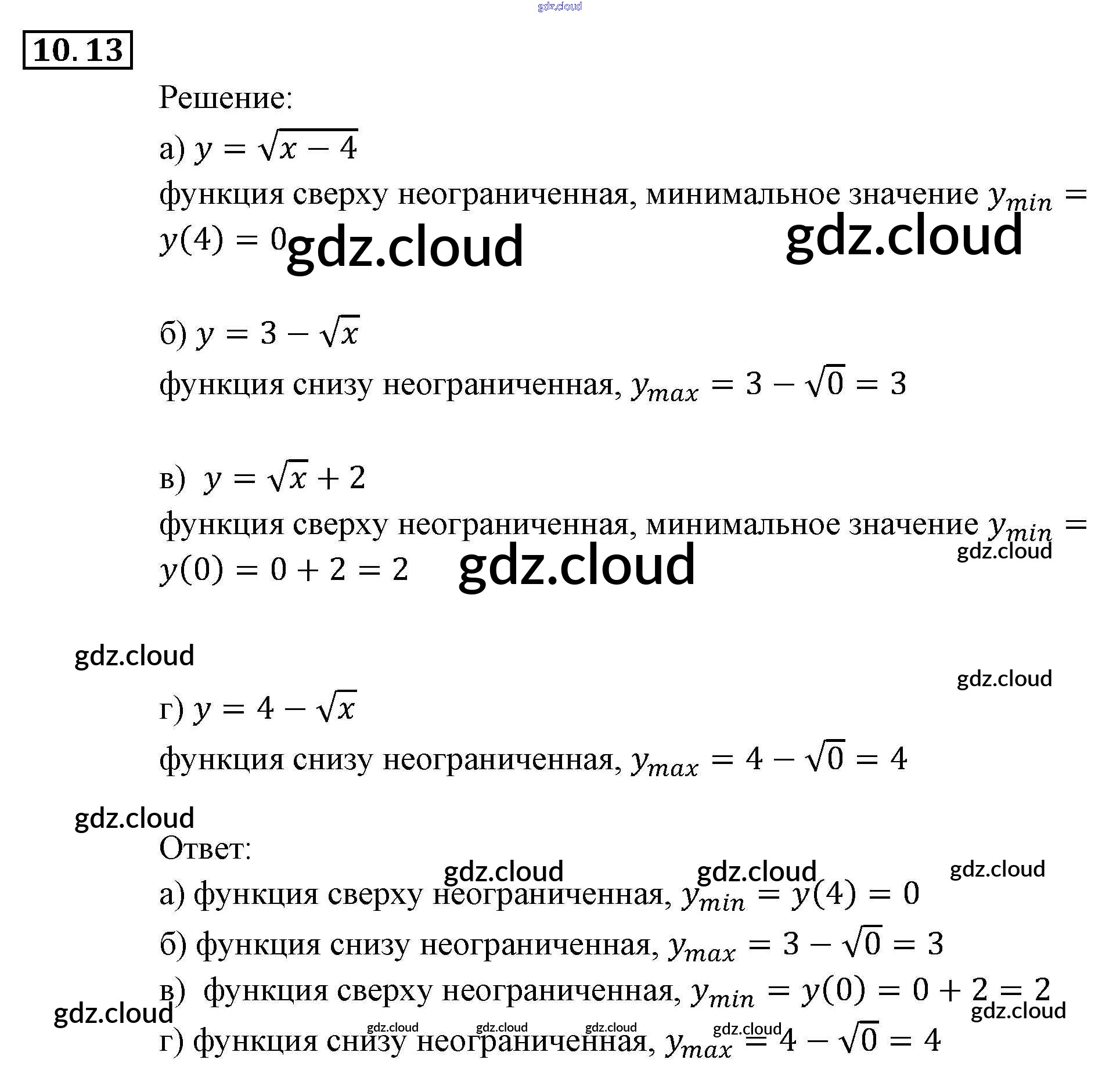 § 10. Свойства функций Ответы к Главе 3. Числовые функции по Алгебре 9 класс Задачник Мордкович Часть 2 Мнемозина