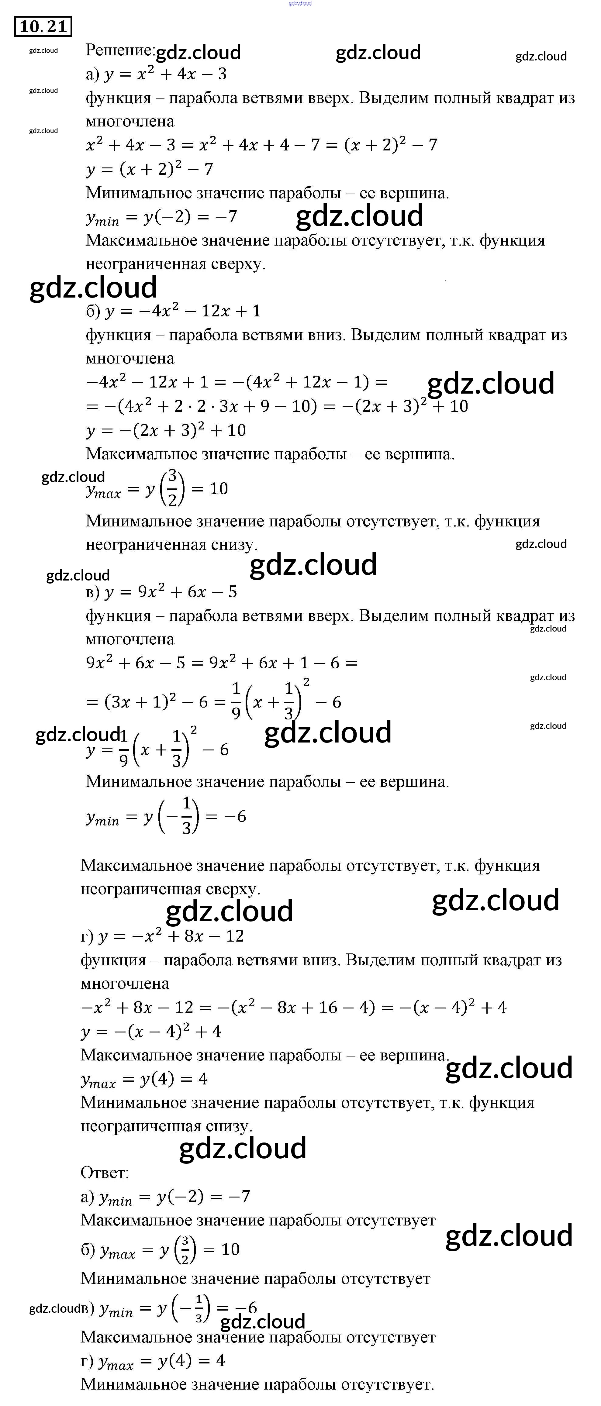 Ответ на задание 21 Задачник Алгебра за 9 (девятый) класс Мордкович, Александрова, Мишустина, Тульчинская, Семёнов 2010 Часть 2