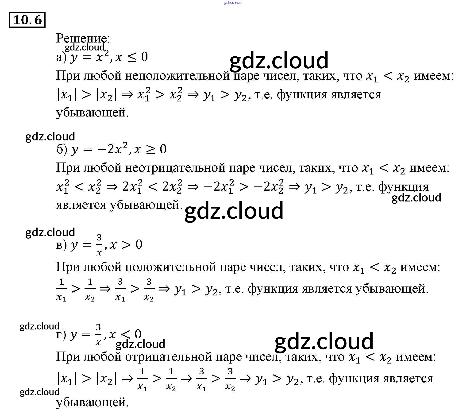 § 10. Свойства функций Ответы к Главе 3. Числовые функции по Алгебре 9 класс Задачник Мордкович Часть 2 Мнемозина