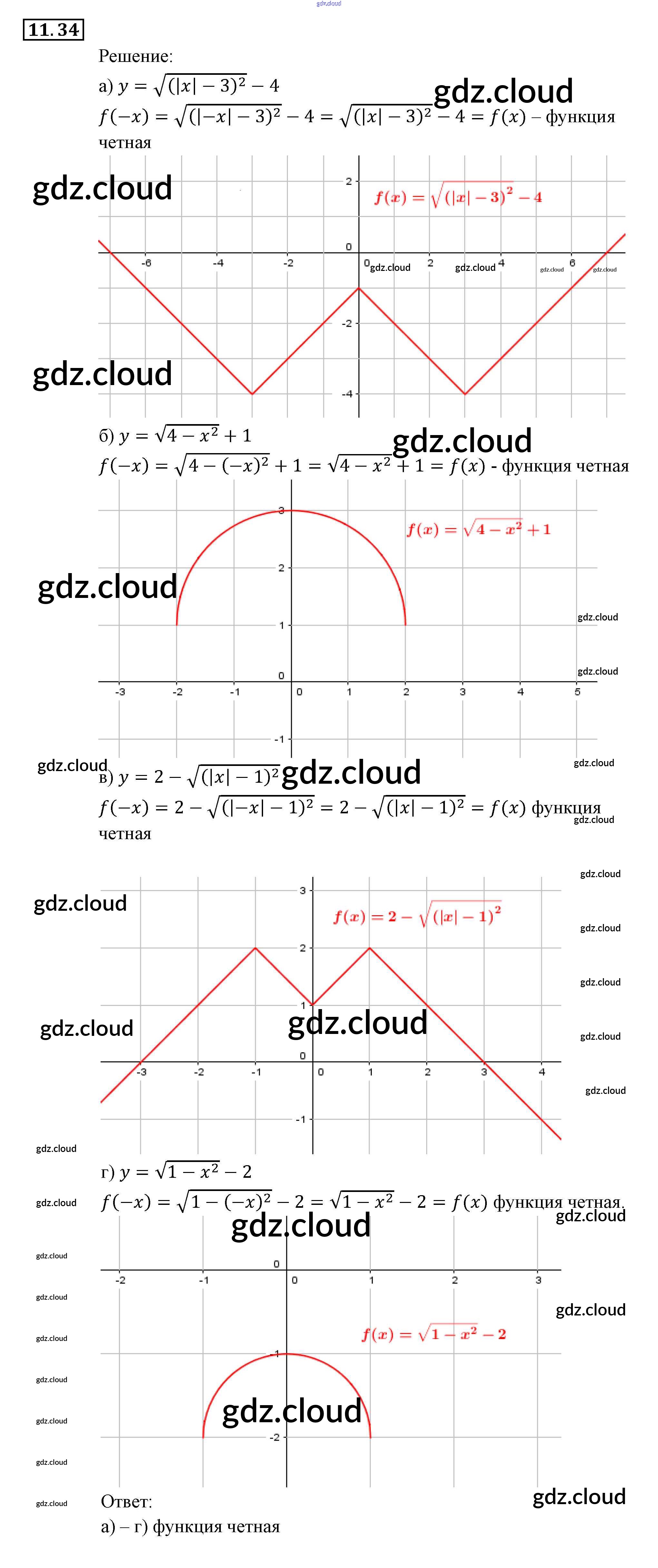 § 11. Честные и нечестные функции Ответы к Главе 3. Числовые функции по Алгебре 9 класс Задачник Мордкович Часть 2 Мнемозина