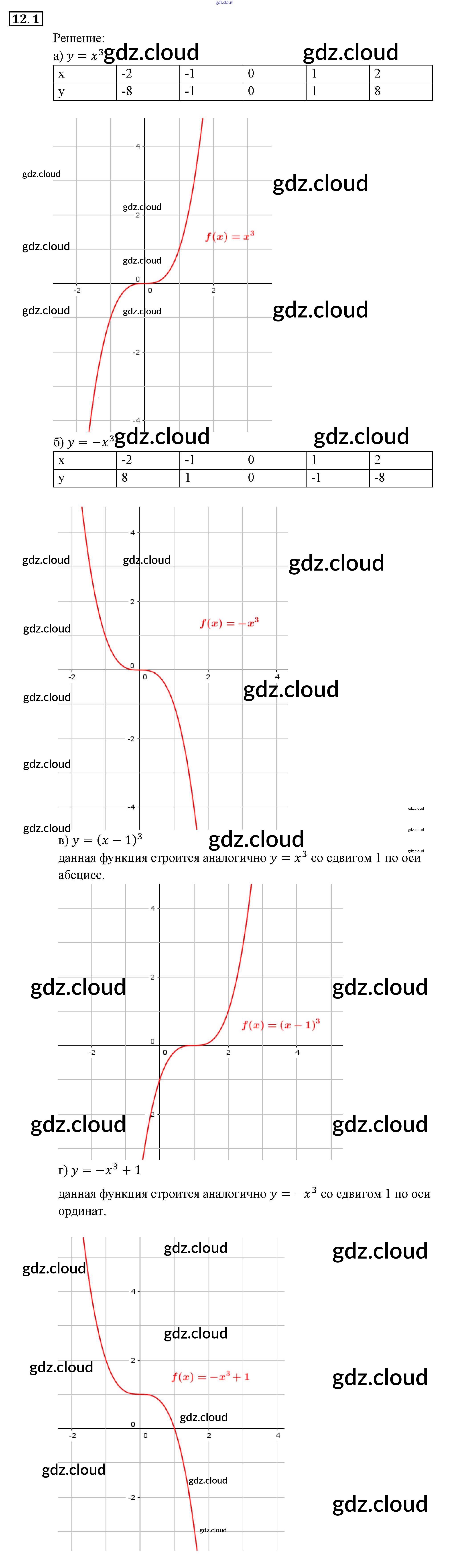 § 12. Функции у = хп (п е N), их свойства и графики Ответы к Главе 3. Числовые функции по Алгебре 9 класс Задачник Мордкович Часть 2 Мнемозина