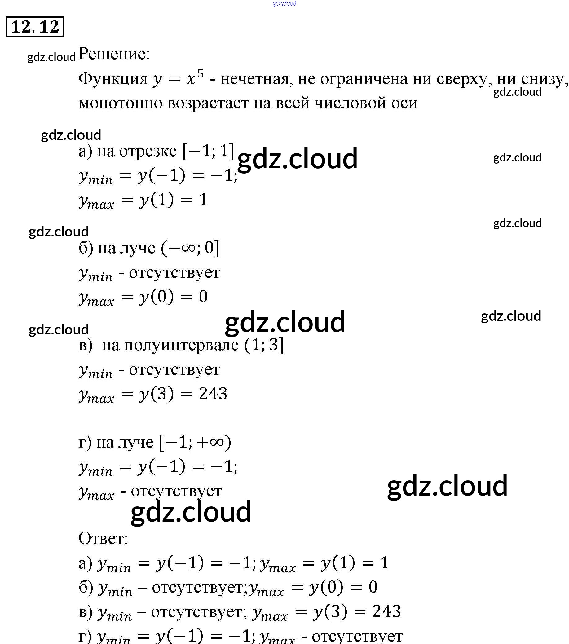 § 12. Функции у = хп (п е N), их свойства и графики Ответы к Главе 3. Числовые функции по Алгебре 9 класс Задачник Мордкович Часть 2 Мнемозина