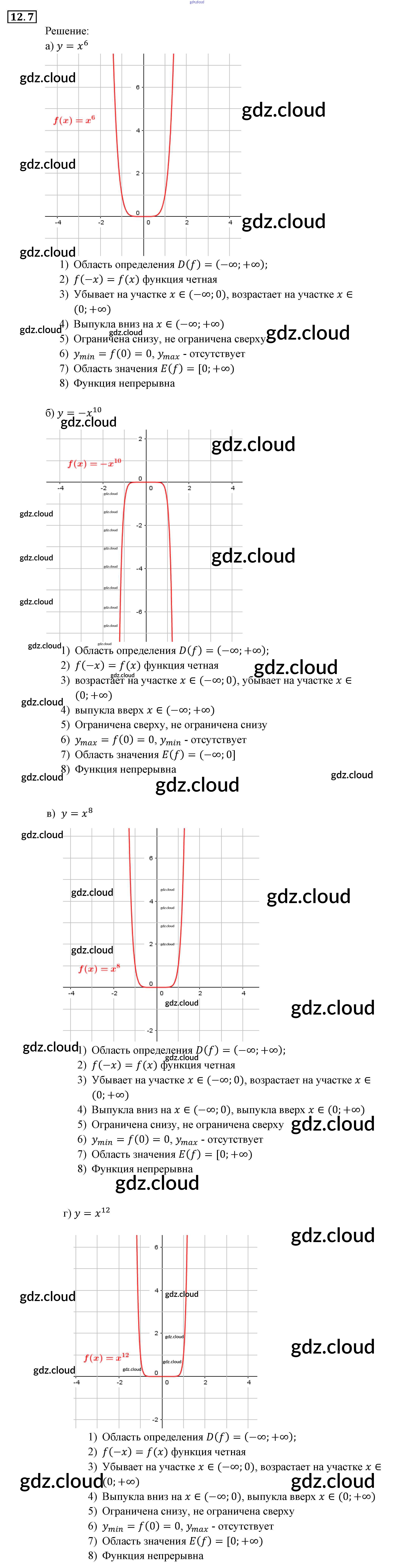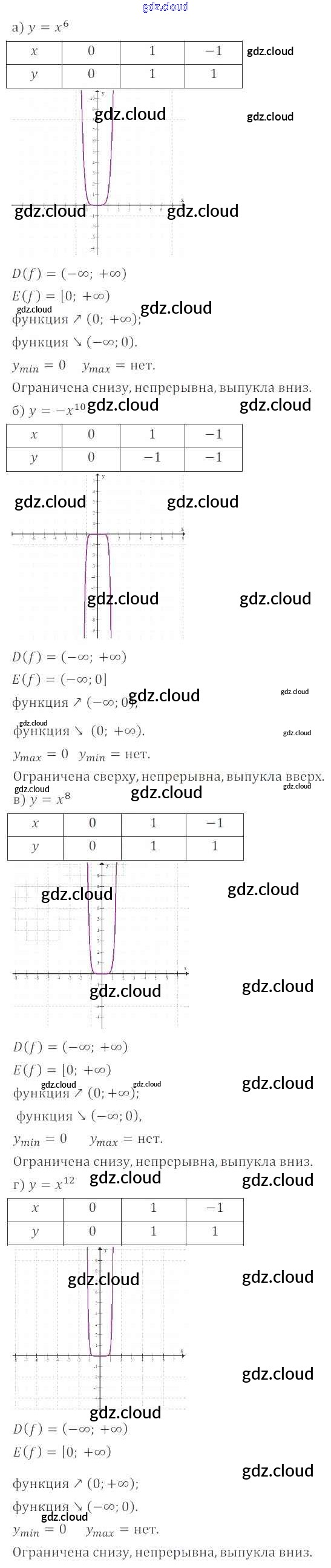 § 12. Функции у = хп (п е N), их свойства и графики Ответы к Главе 3. Числовые функции по Алгебре 9 класс Задачник Мордкович Часть 2 Мнемозина