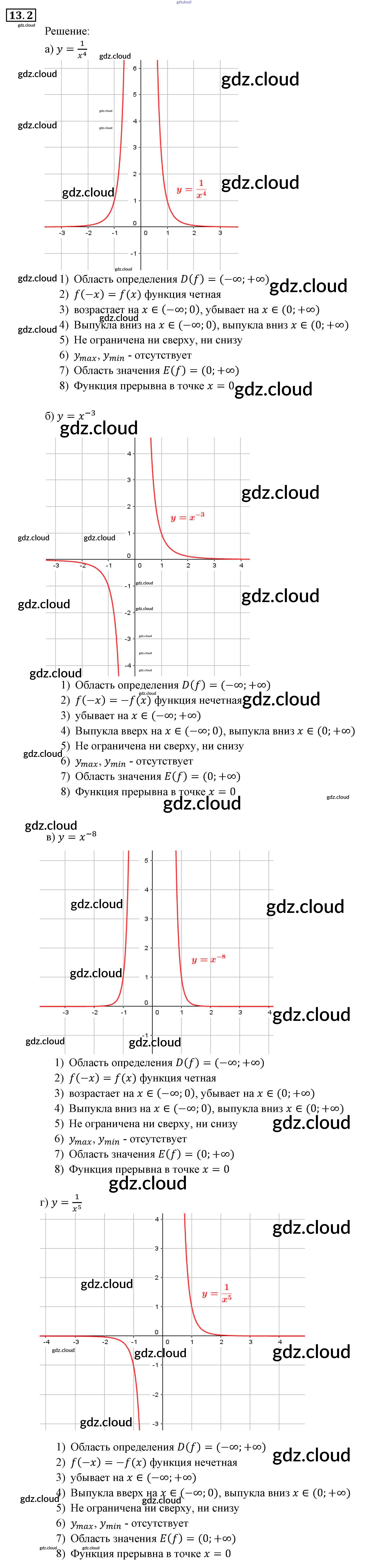§ 13. Функции у = х~" (п е N), их свойства и графики Ответы к Главе 3. Числовые функции по Алгебре 9 класс Задачник Мордкович Часть 2 Мнемозина