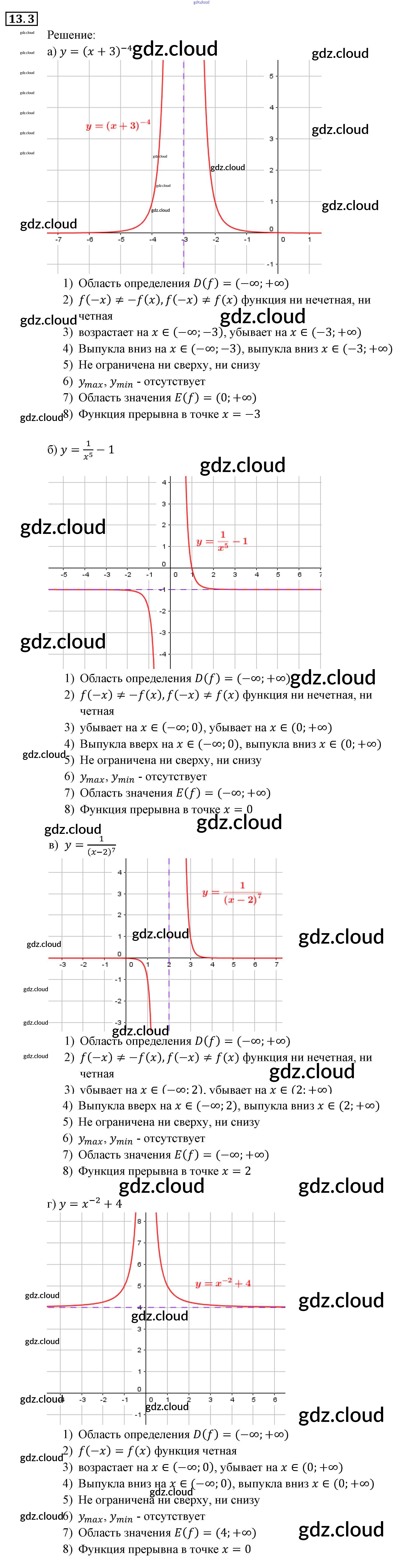 § 13. Функции у = х~" (п е N), их свойства и графики Ответы к Главе 3. Числовые функции по Алгебре 9 класс Задачник Мордкович Часть 2 Мнемозина