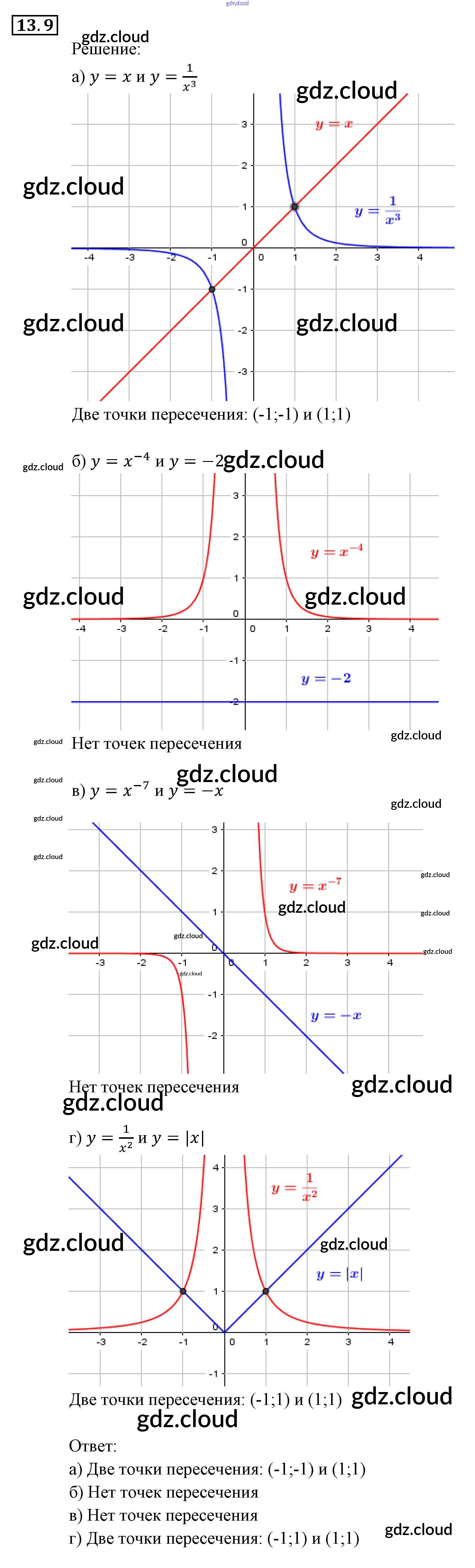 § 13. Функции у = х~" (п е N), их свойства и графики Ответы к Главе 3. Числовые функции по Алгебре 9 класс Задачник Мордкович Часть 2 Мнемозина