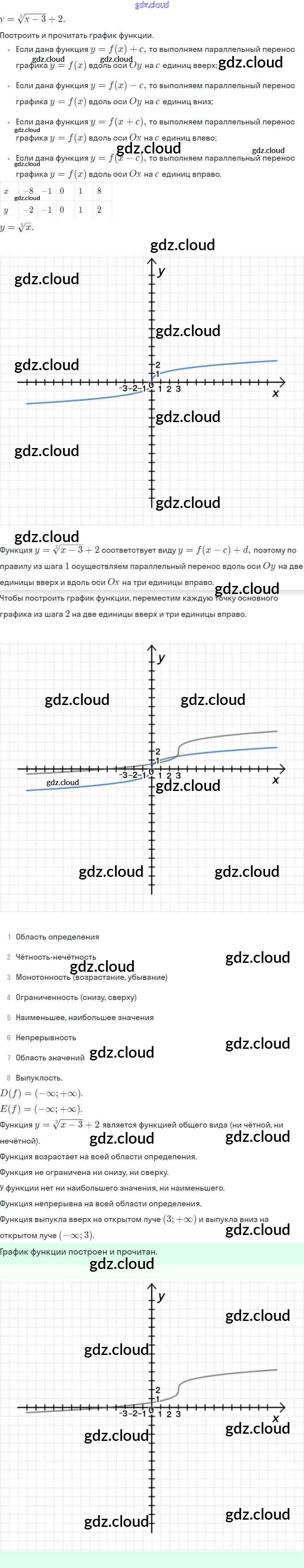 §14. Функция y = ∛x, её свойства и график Ответы. Глава 3. Числовые функции по Алгебре 9 класс Задачник Мордкович Часть 2 Мнемозина