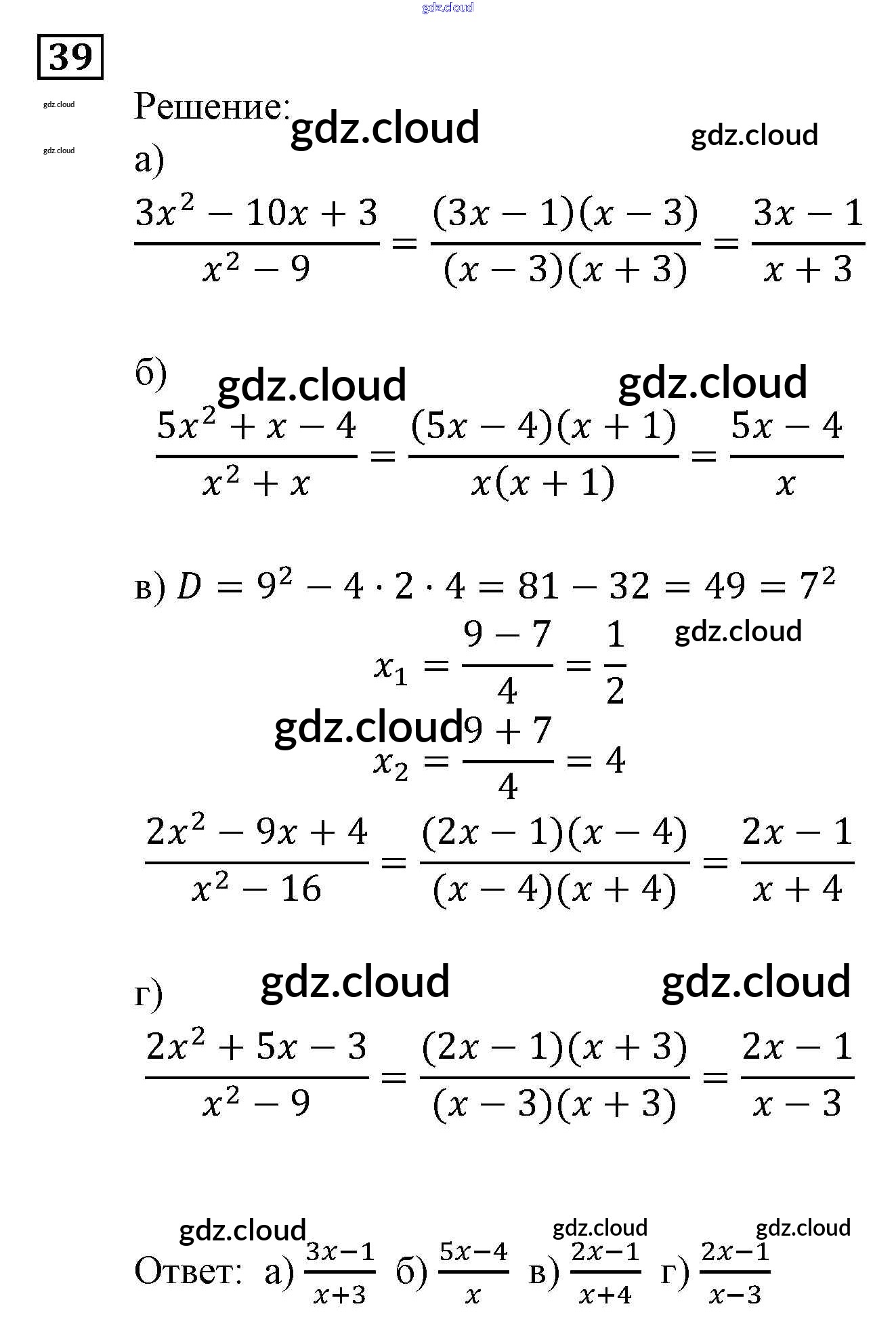 Ответ на задание 39 Задачник Алгебра за 9 (девятый) класс Мордкович, Александрова, Мишустина, Тульчинская, Семёнов 2010 Часть 2
