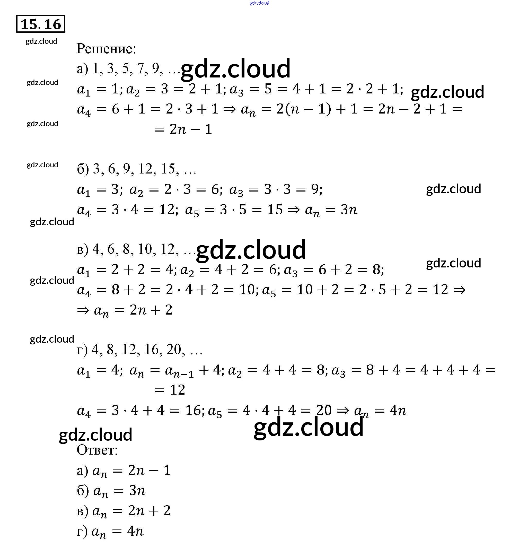 § 15. Числовые последовательности Ответы к Главе 4. Прогрессии по Алгебре 9 класс Задачник Мордкович Часть 2 Мнемозина
