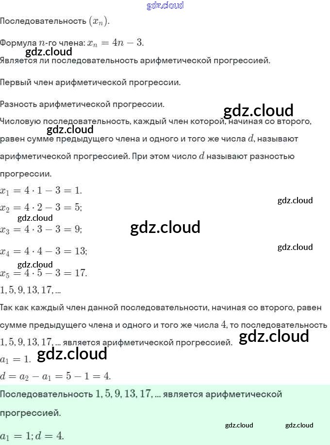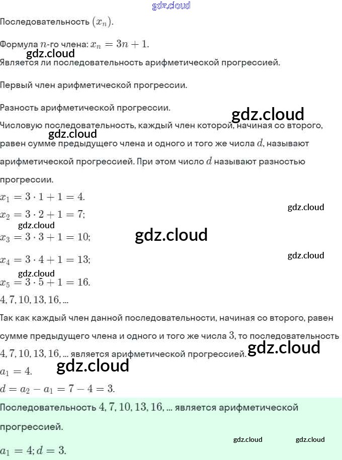 § 16. Арифметическая прогрессия Ответы. Глава 4. Прогрессии по Алгебре 9 класс Задачник Мордкович Часть 2 Мнемозина