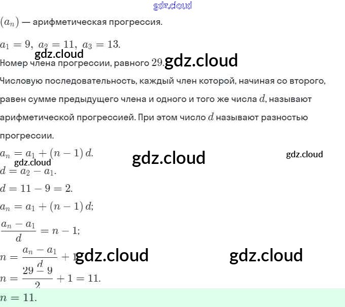 § 16. Арифметическая прогрессия Ответы. Глава 4. Прогрессии по Алгебре 9 класс Задачник Мордкович Часть 2 Мнемозина