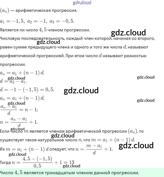 § 16. Арифметическая прогрессия Ответы. Глава 4. Прогрессии по Алгебре 9 класс Задачник Мордкович Часть 2 Мнемозина