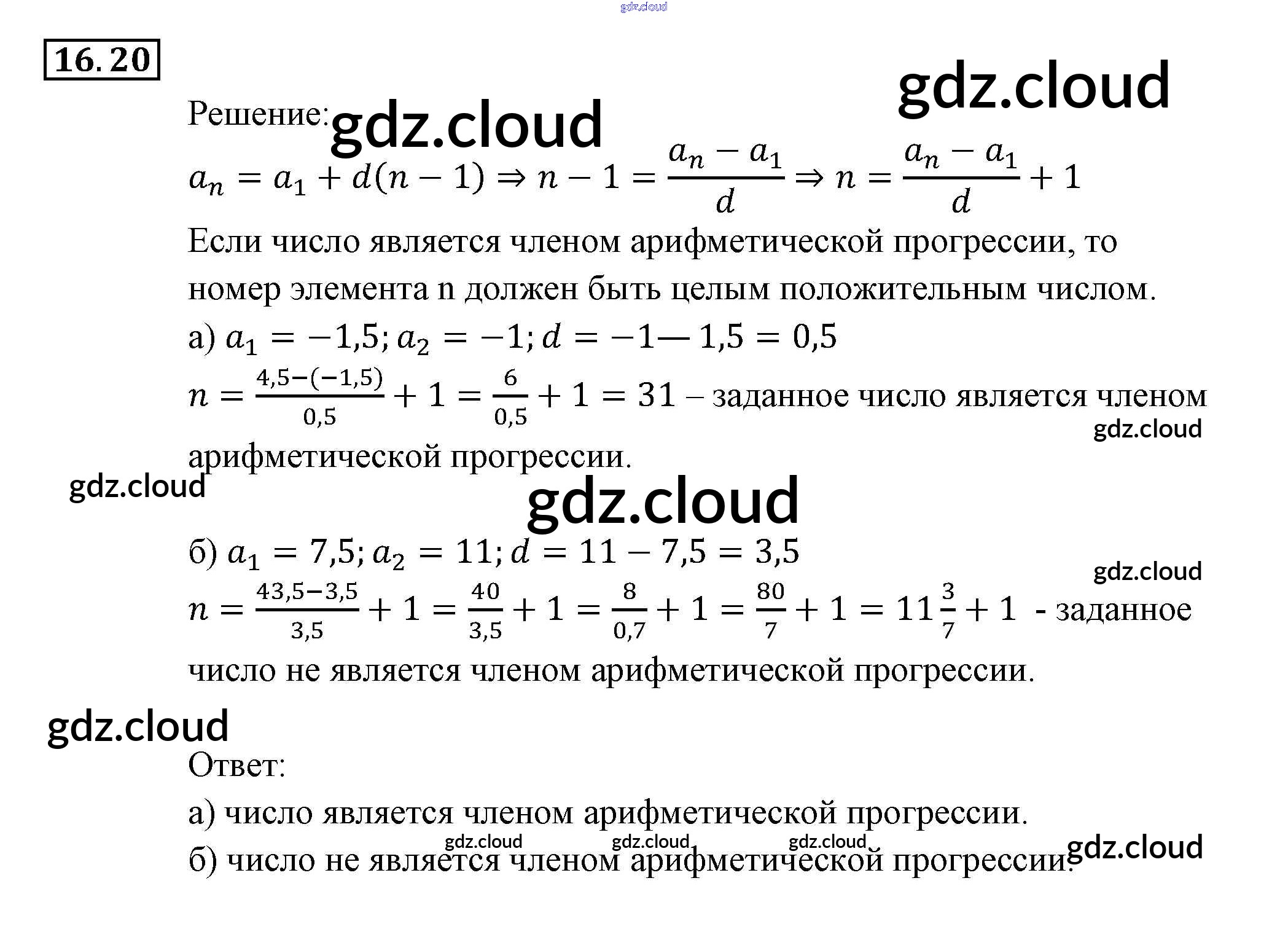 § 16. Арифметическая прогрессия Ответы к Главе 4. Прогрессии по Алгебре 9 класс Задачник Мордкович Часть 2 Мнемозина