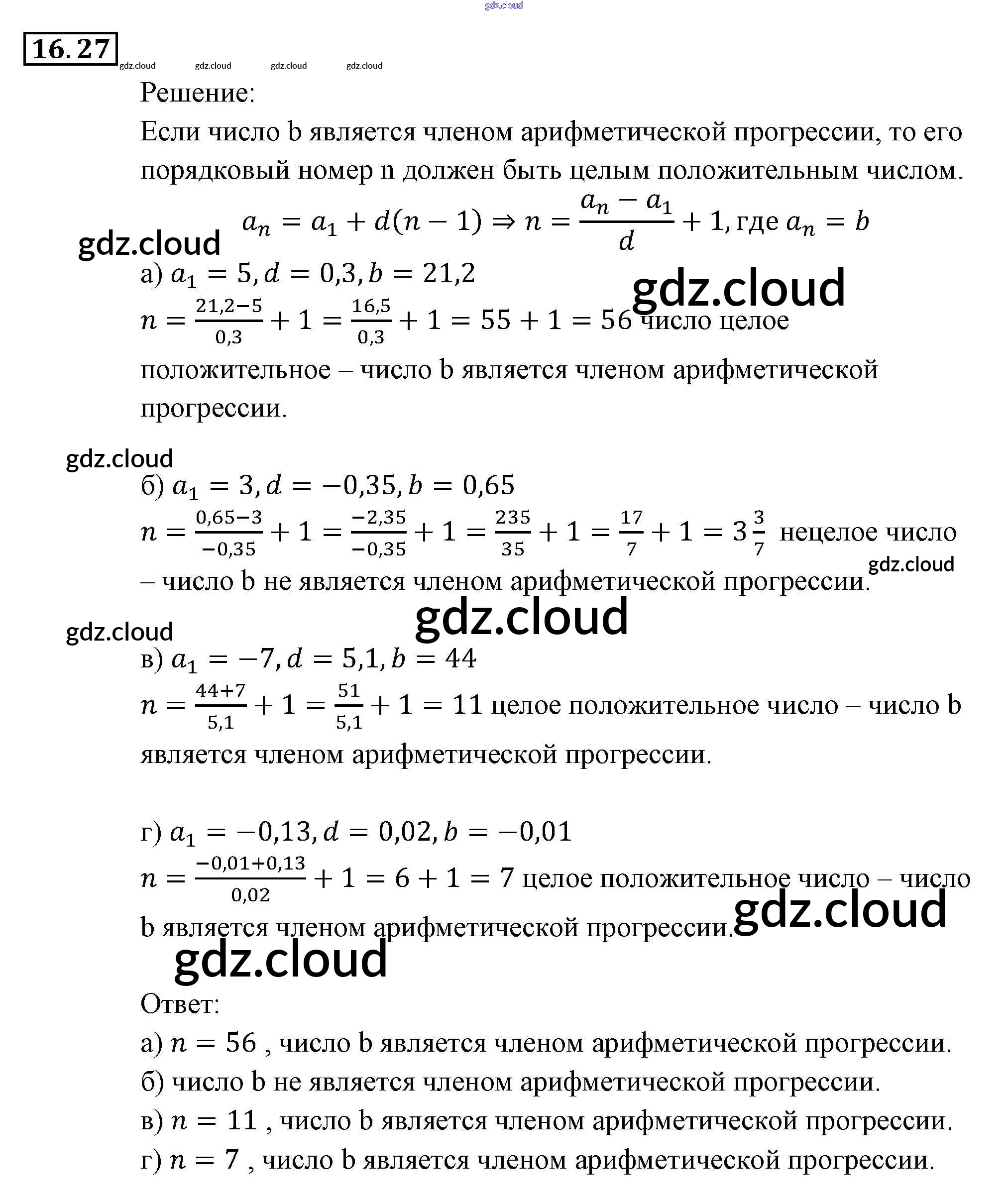 § 16. Арифметическая прогрессия Ответы. Глава 4. Прогрессии по Алгебре 9 класс Задачник Мордкович Часть 2 Мнемозина