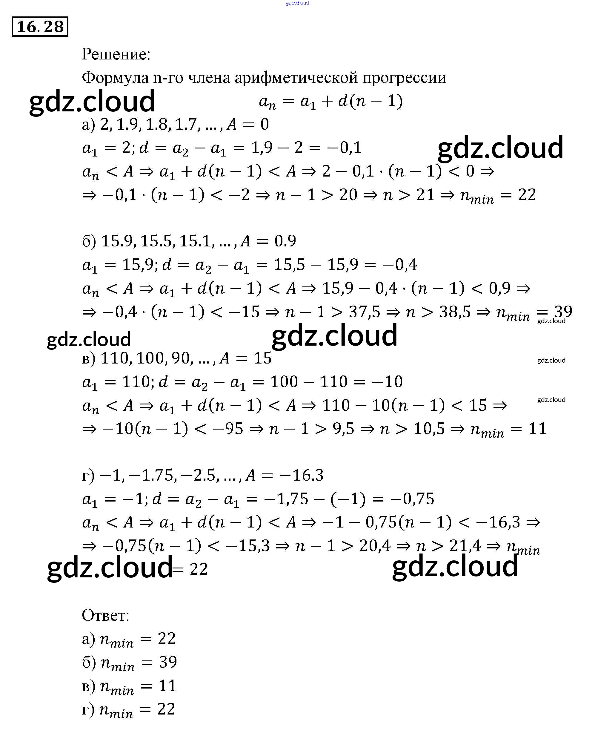 Ответ на задание 16.28 Задачник Алгебра за 9 (девятый) класс Мордкович, Александрова, Мишустина, Тульчинская, Семёнов 2010 Часть 2