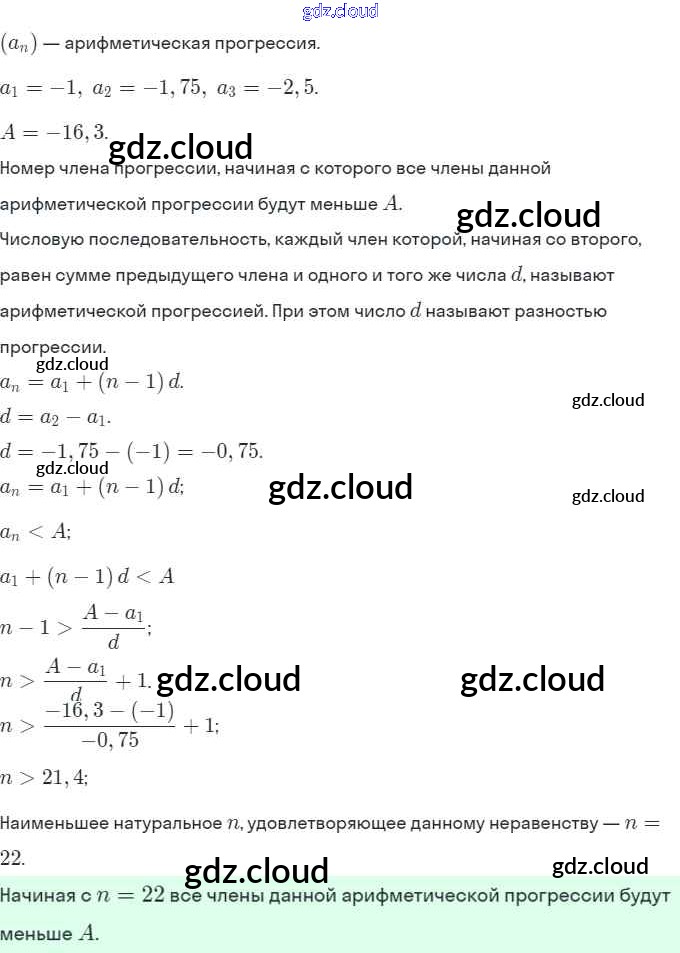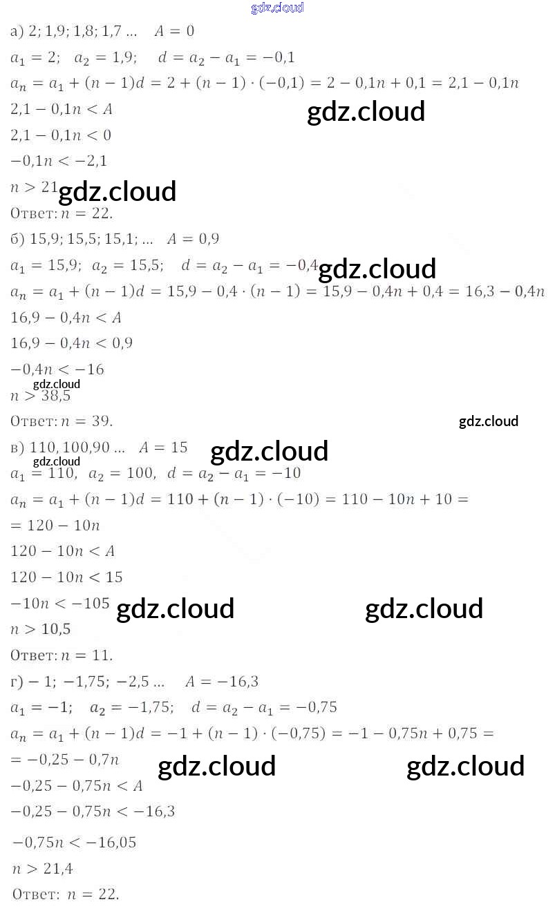 § 16. Арифметическая прогрессия Ответы. Глава 4. Прогрессии по Алгебре 9 класс Задачник Мордкович Часть 2 Мнемозина