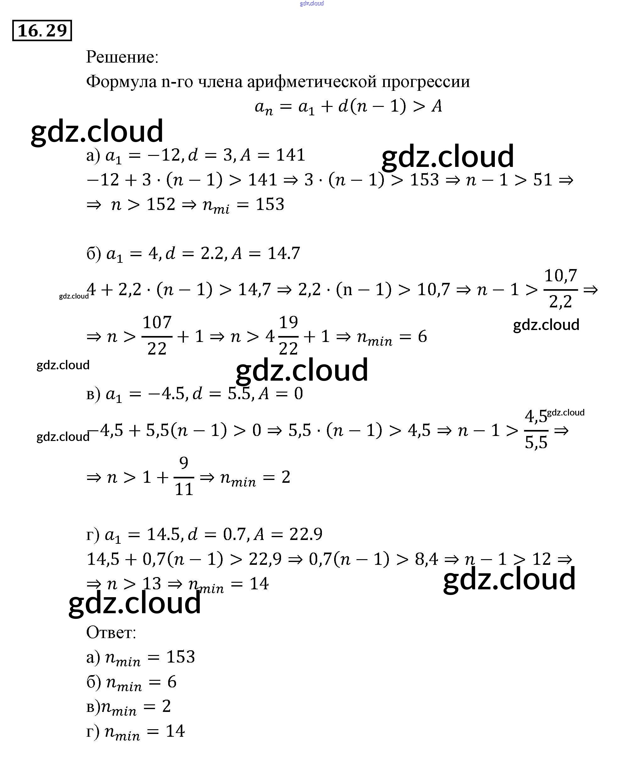 Ответ на задание 16.29 Задачник Алгебра за 9 (девятый) класс Мордкович, Александрова, Мишустина, Тульчинская, Семёнов 2010 Часть 2