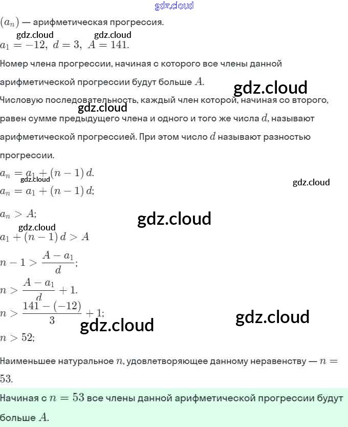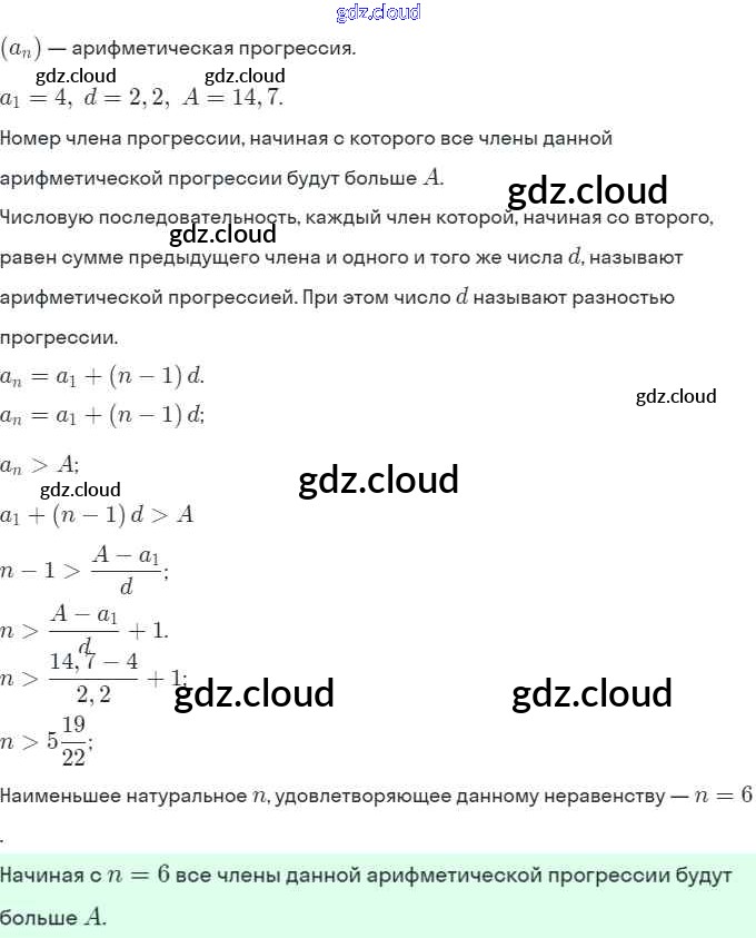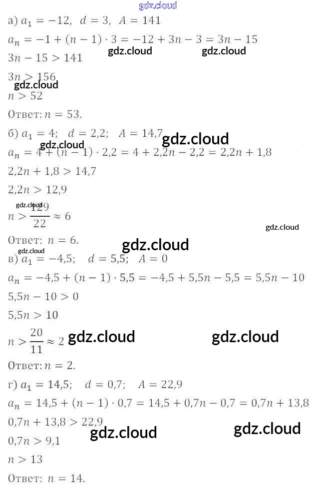 § 16. Арифметическая прогрессия Ответы. Глава 4. Прогрессии по Алгебре 9 класс Задачник Мордкович Часть 2 Мнемозина